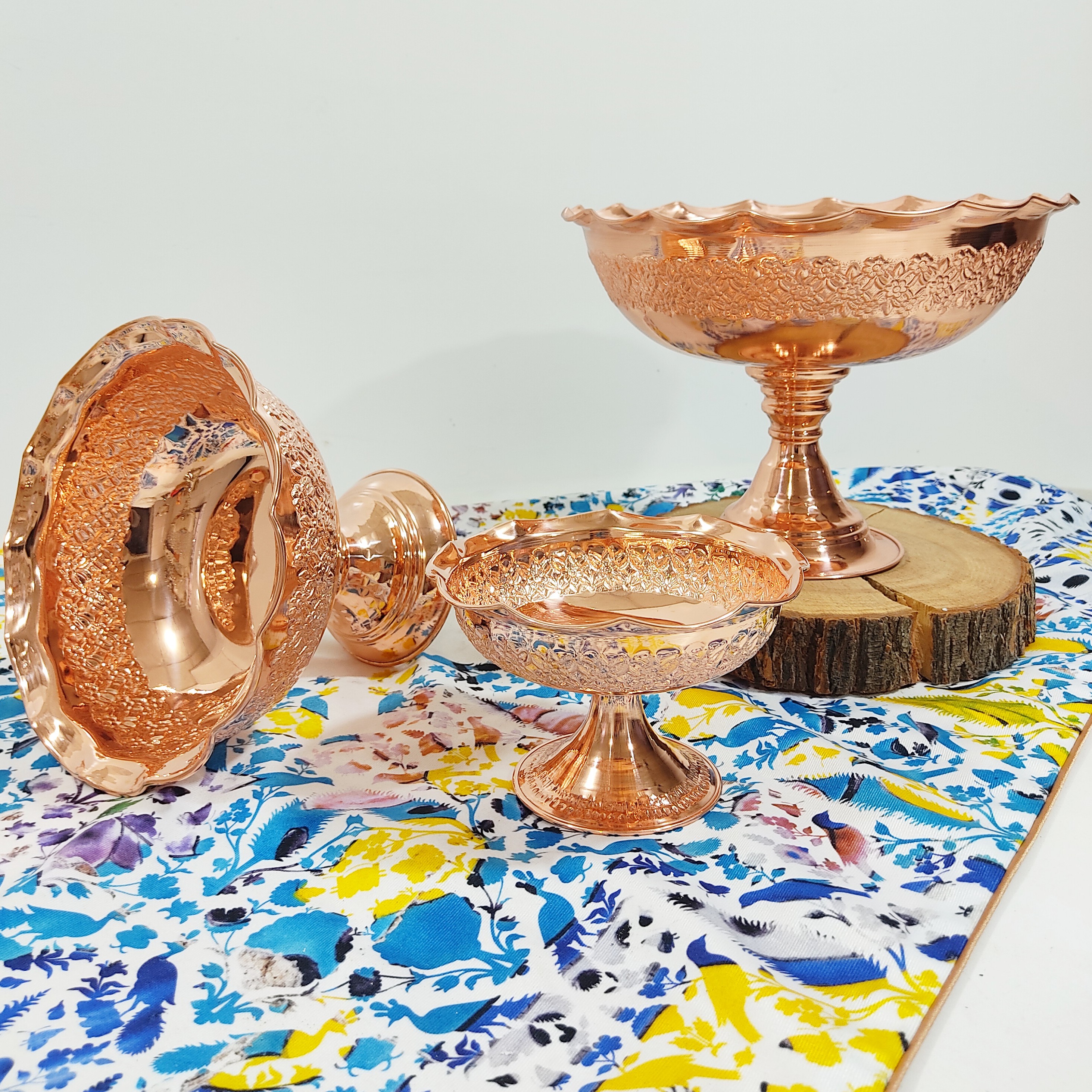 سرویس میوه خوری آجیل خوری شکلات خوری مسی گل برجسته رنگ ثابت مبلمونسرا مدل 265412