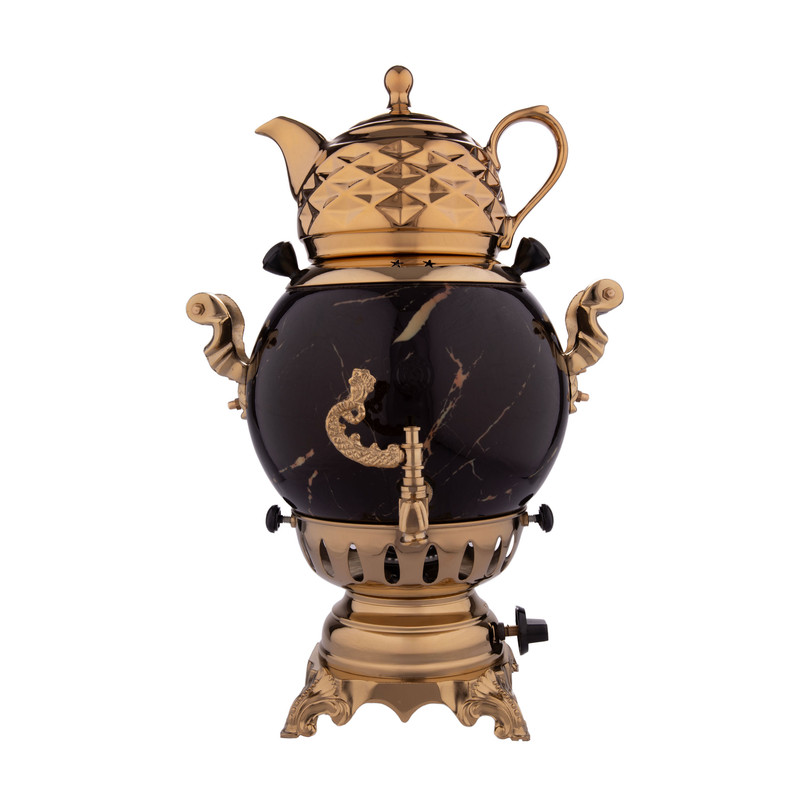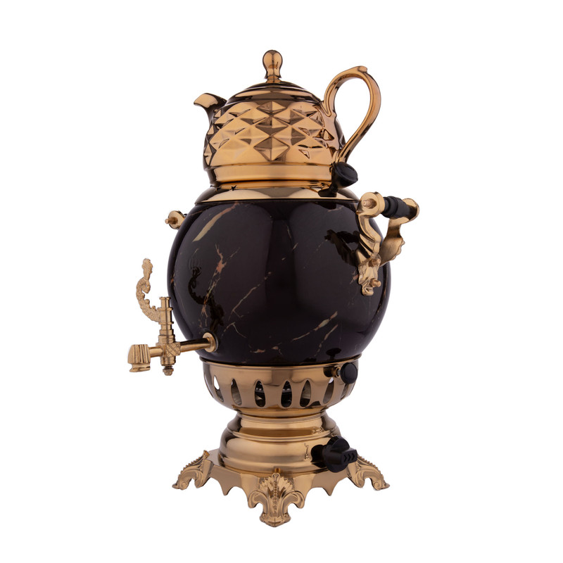 سماور سنگی تیره رنگ همراه با یک عدد قوری داخل بسته بندی میباشد این سماور در ابعاد35*35*50 بوده و نهایی آن 6 لیتر است. جنس پایه و بدنه و دسته از بزنج تشکیل شده،ضمنا پایه گازی سماور دارای استاندارد ملی ایران میباشد