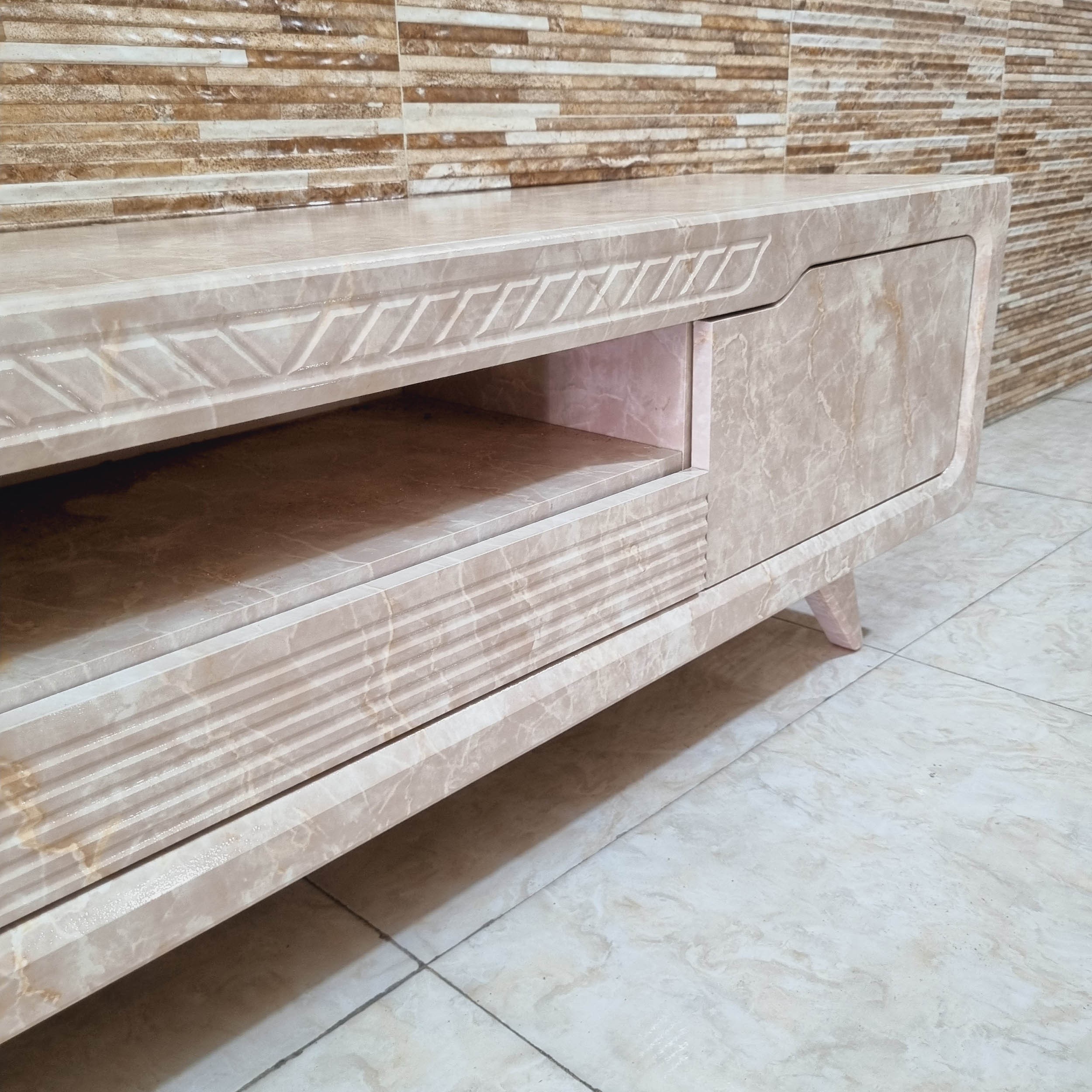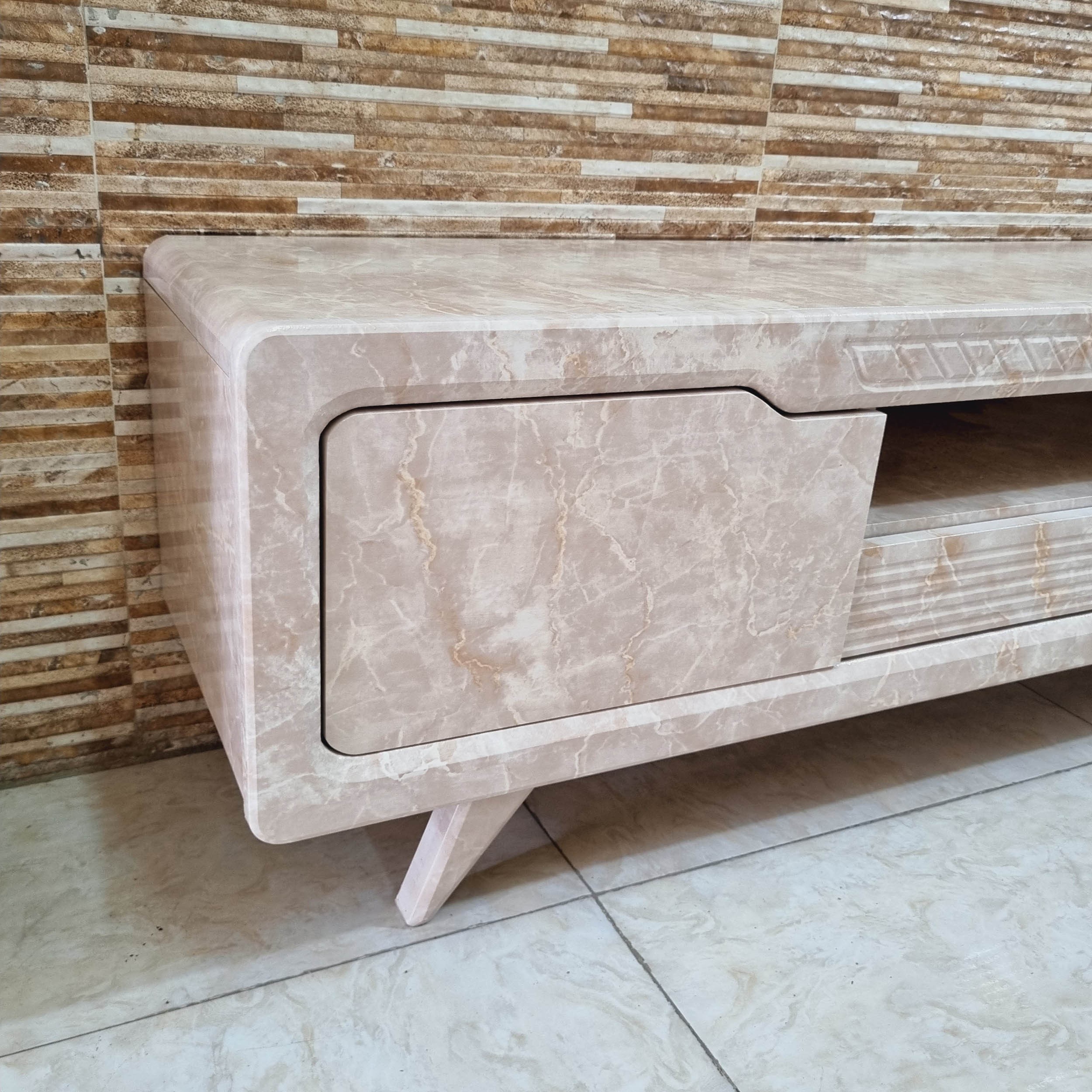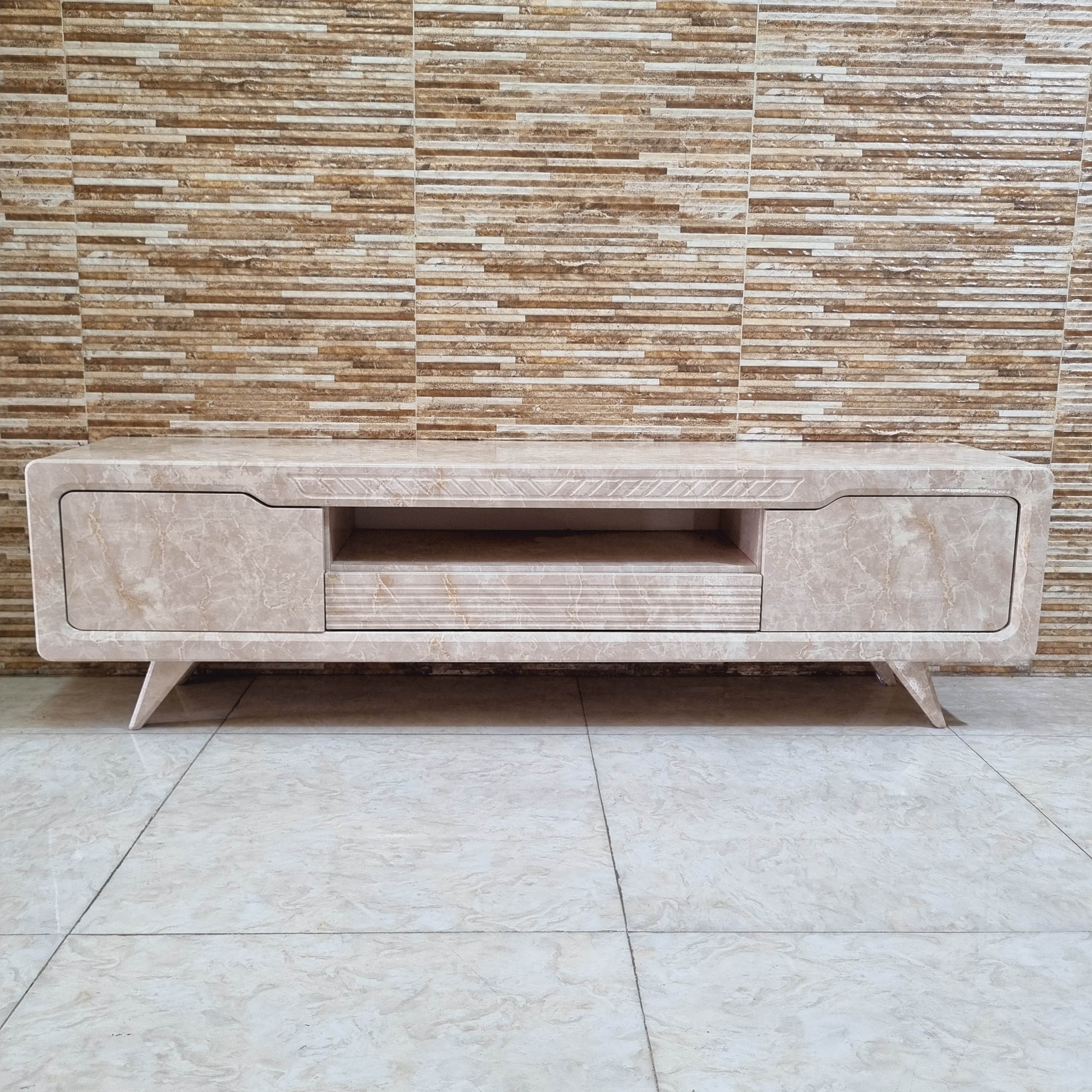 میز تلویزیون شبستان مدل 2026 طول 160 رنگ کرم تمام ام دی اف مبلمونسرا مدل 221042
