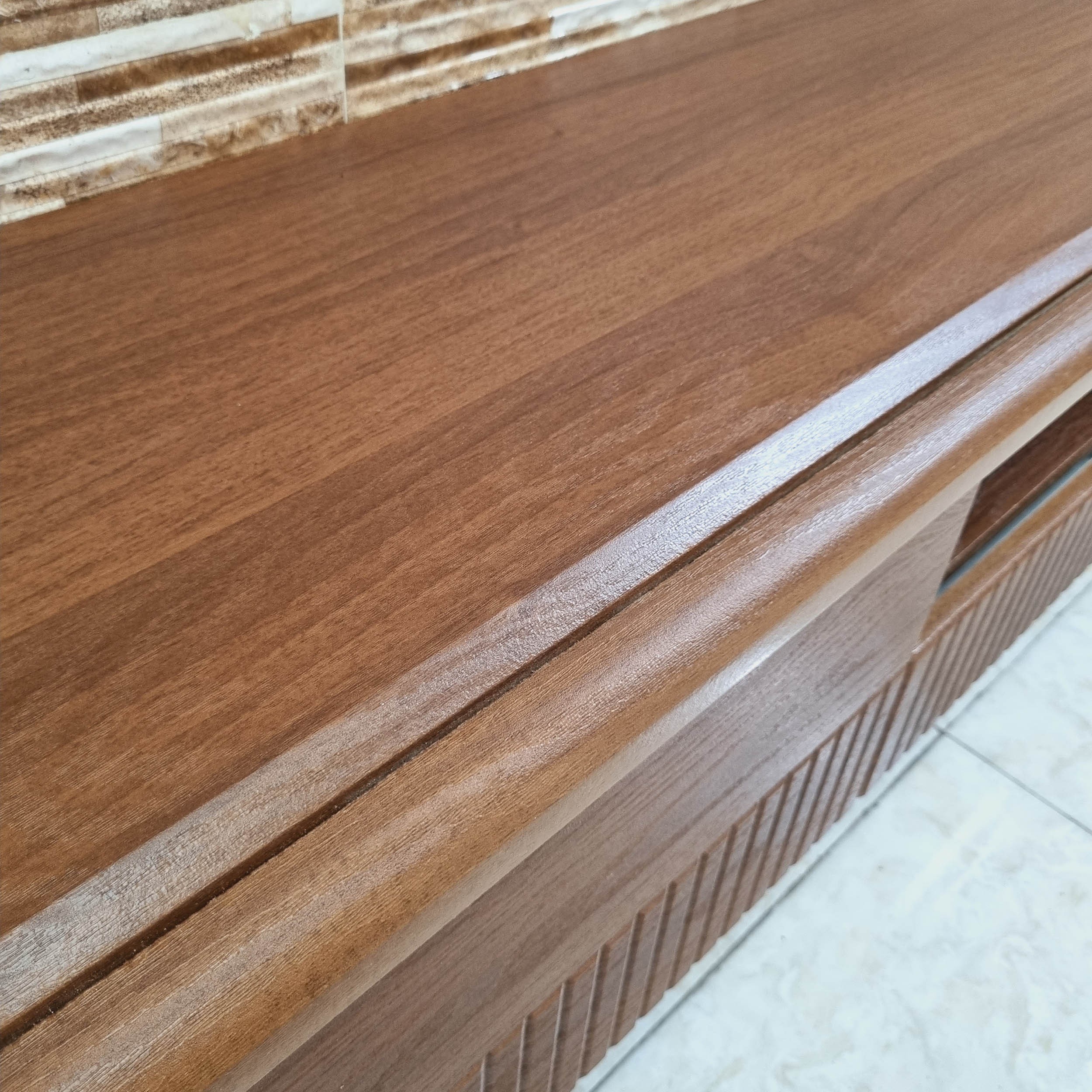 میز تلویزیون شبستان مدل 2025 پلاس رنگ گردویی طول 160 تمام ام دی اف مبلمونسرا مدل 222550