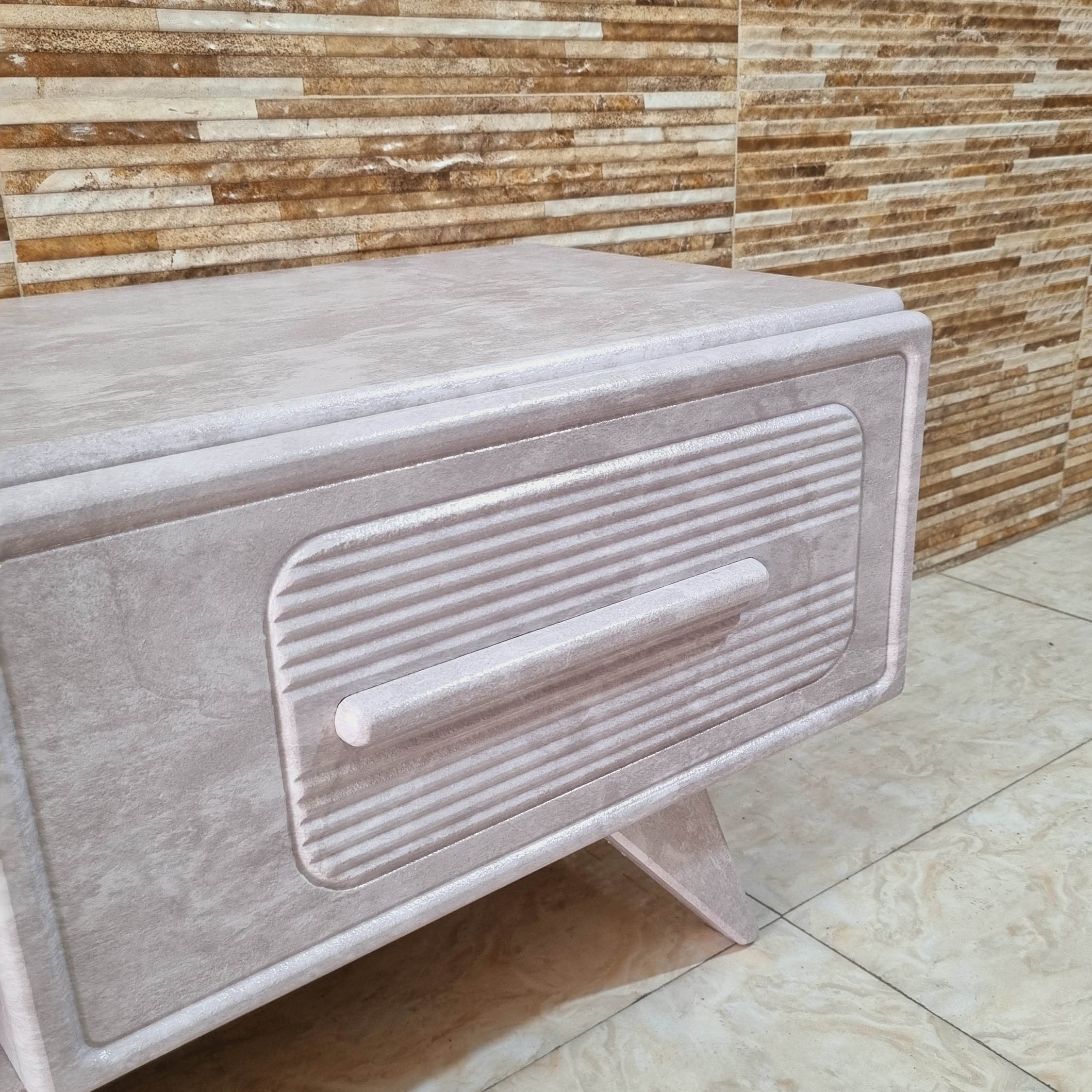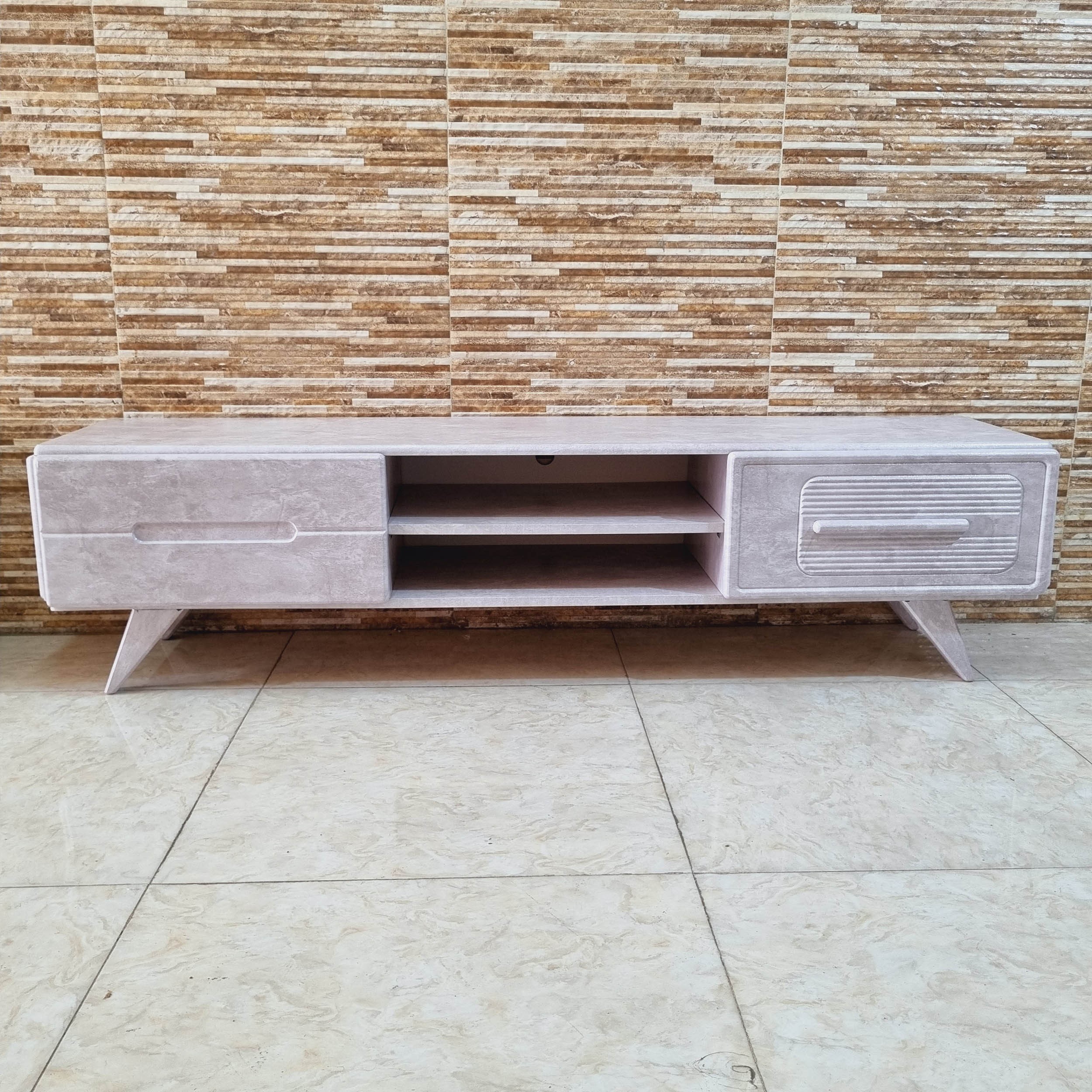 میز تلویزیون شبستان مدل 2023 طول 164 رنگ بتنی تمام ام دی اف مبلمونسرا مدل 220176