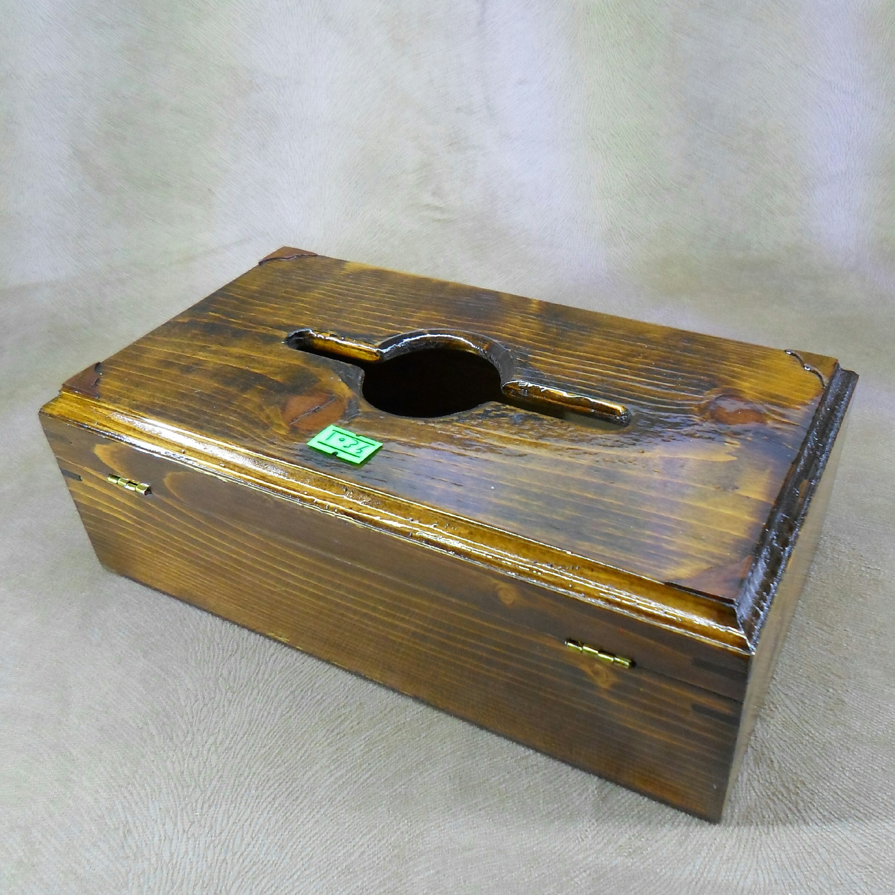 ساخته شده از چوب های روسی و گردو ، کار با کیفیت ، چفت فنری طلایی ، پوشش رنگ سیلر و کیلر . کارایی ساده ، دستمال کاغذی با بسته بندی پلاستیکی رو داخل جعبه قرار بدید . ارادتمند شما ، کارگاه