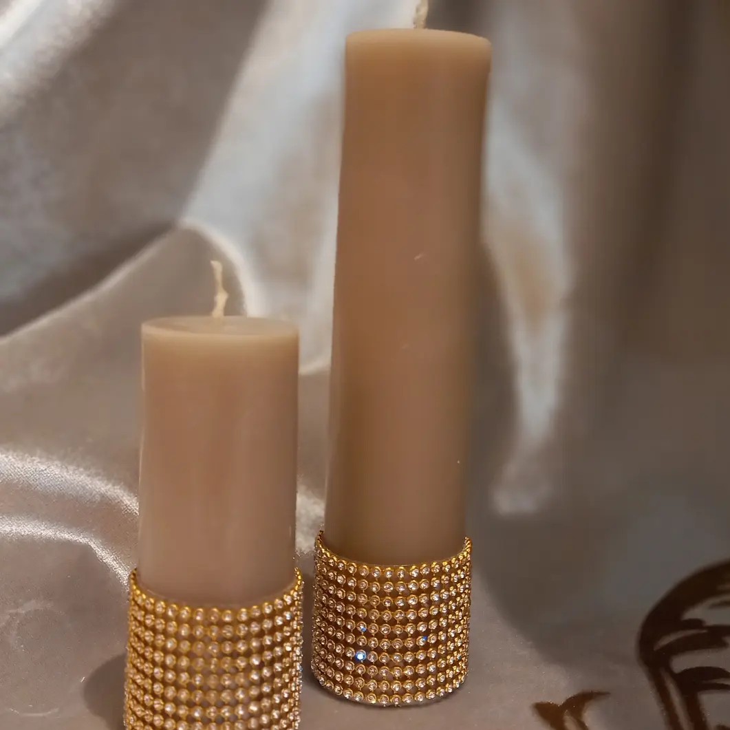 شمع های استوانه طلایی مات نگین دار مبلمونسرا مدل 287565