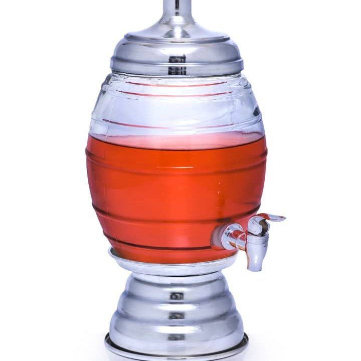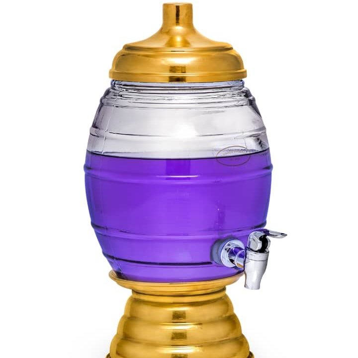 کلمن شیشه ای با درب وپایه فلزی وشیر برنج ترکیه ای مناسب پذیرایی سلف برای میهمانیها ومراسمات