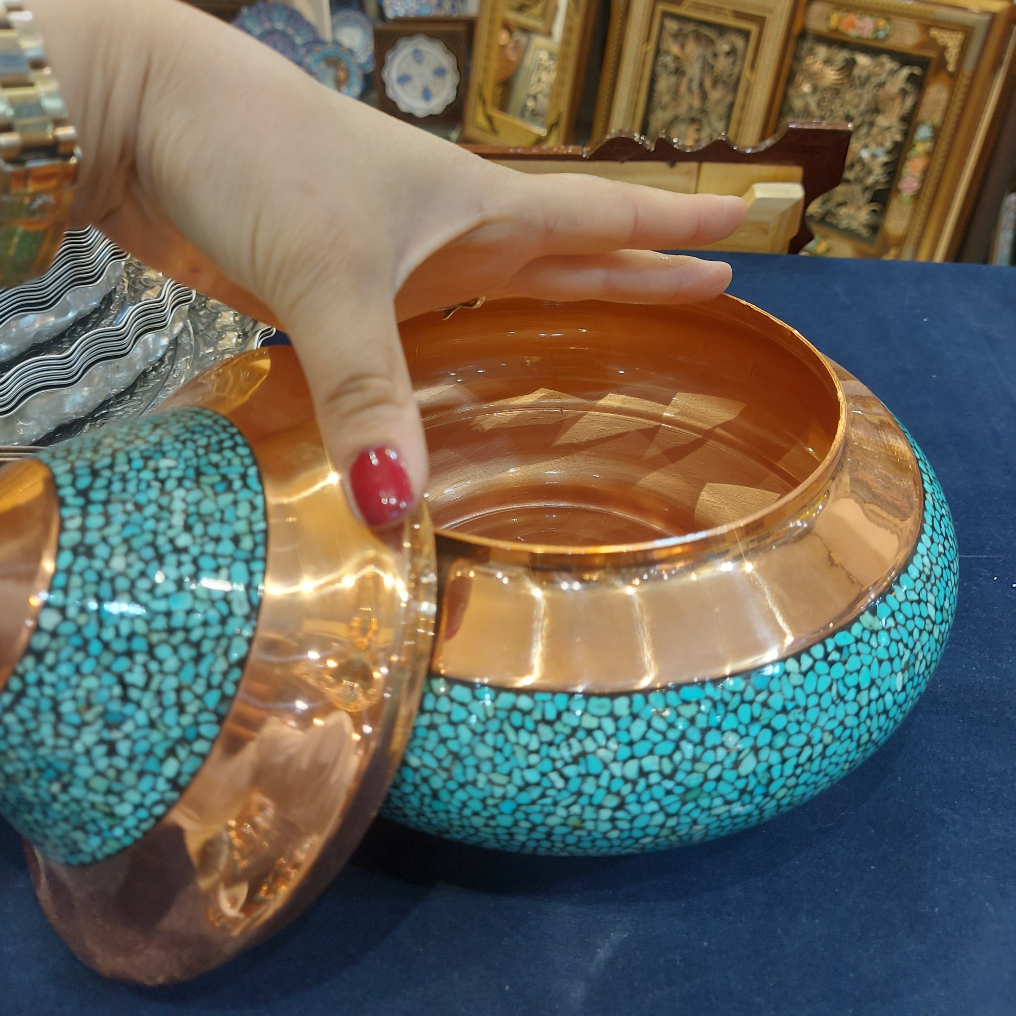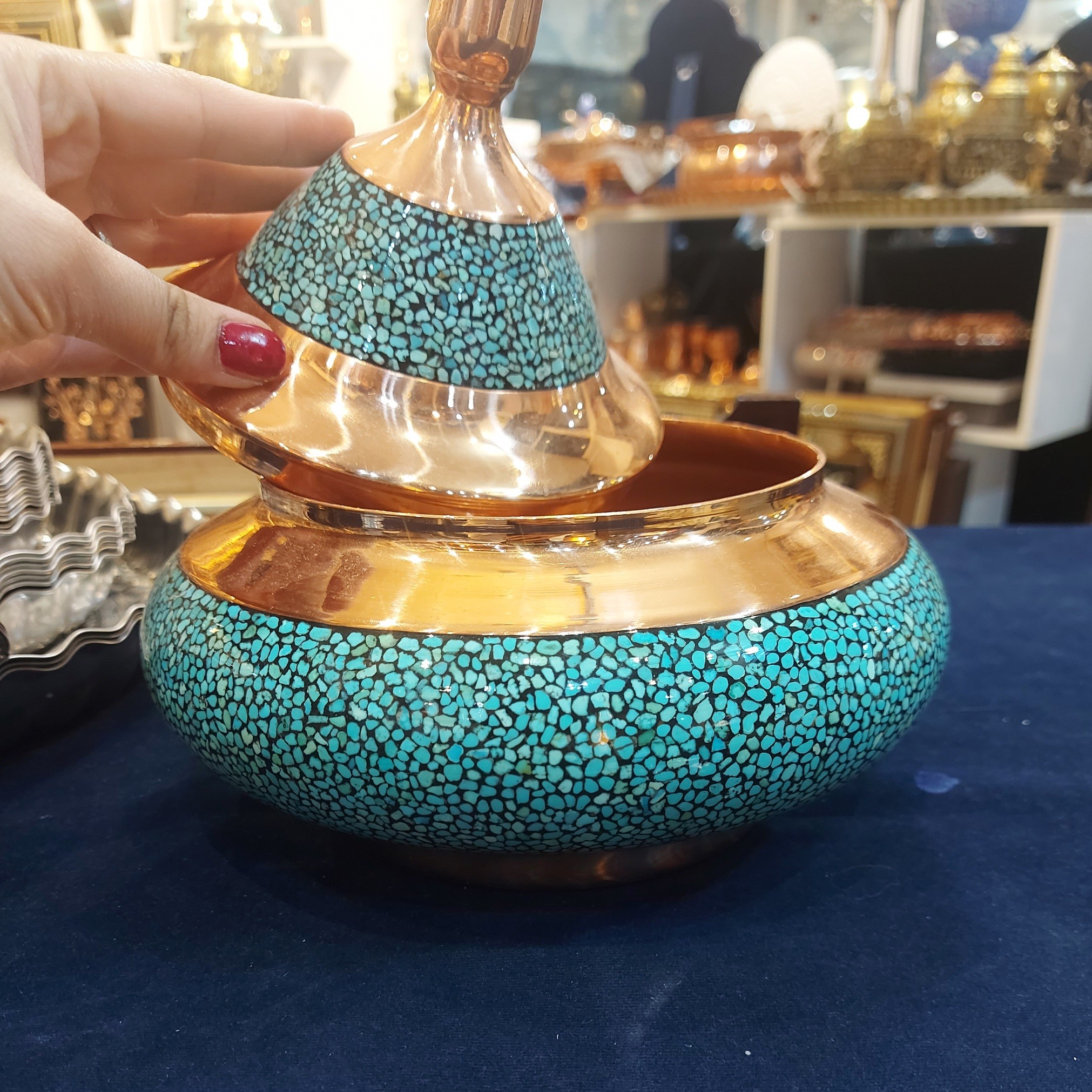 گزخوری سفینه ای 35 سانتی فیروزه کوبی دارای بهترین سنگ اصل فیروزه نیشابور ارسال رایگان برای تمام مشتری های عزیزمون مبلمونسرا مدل 274031