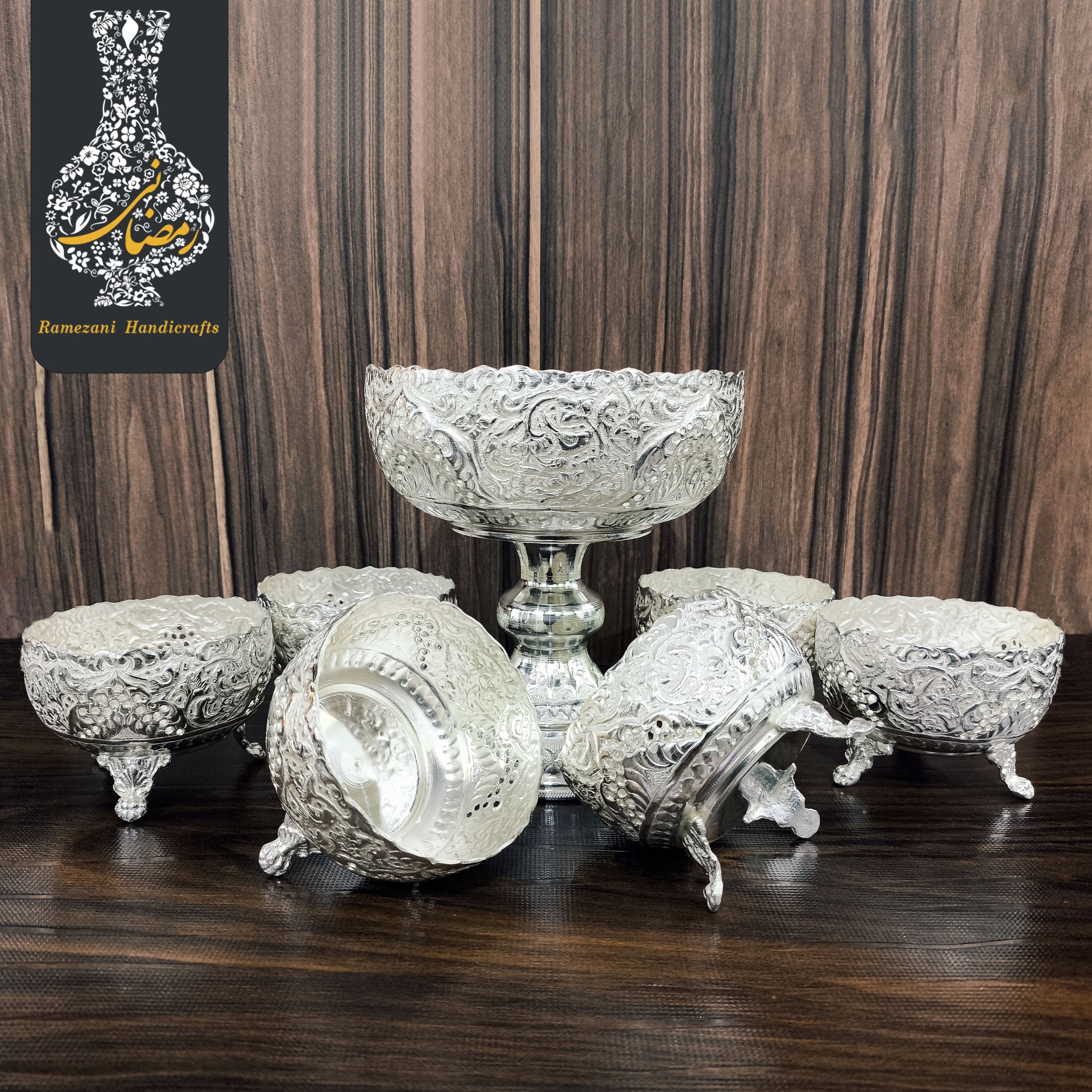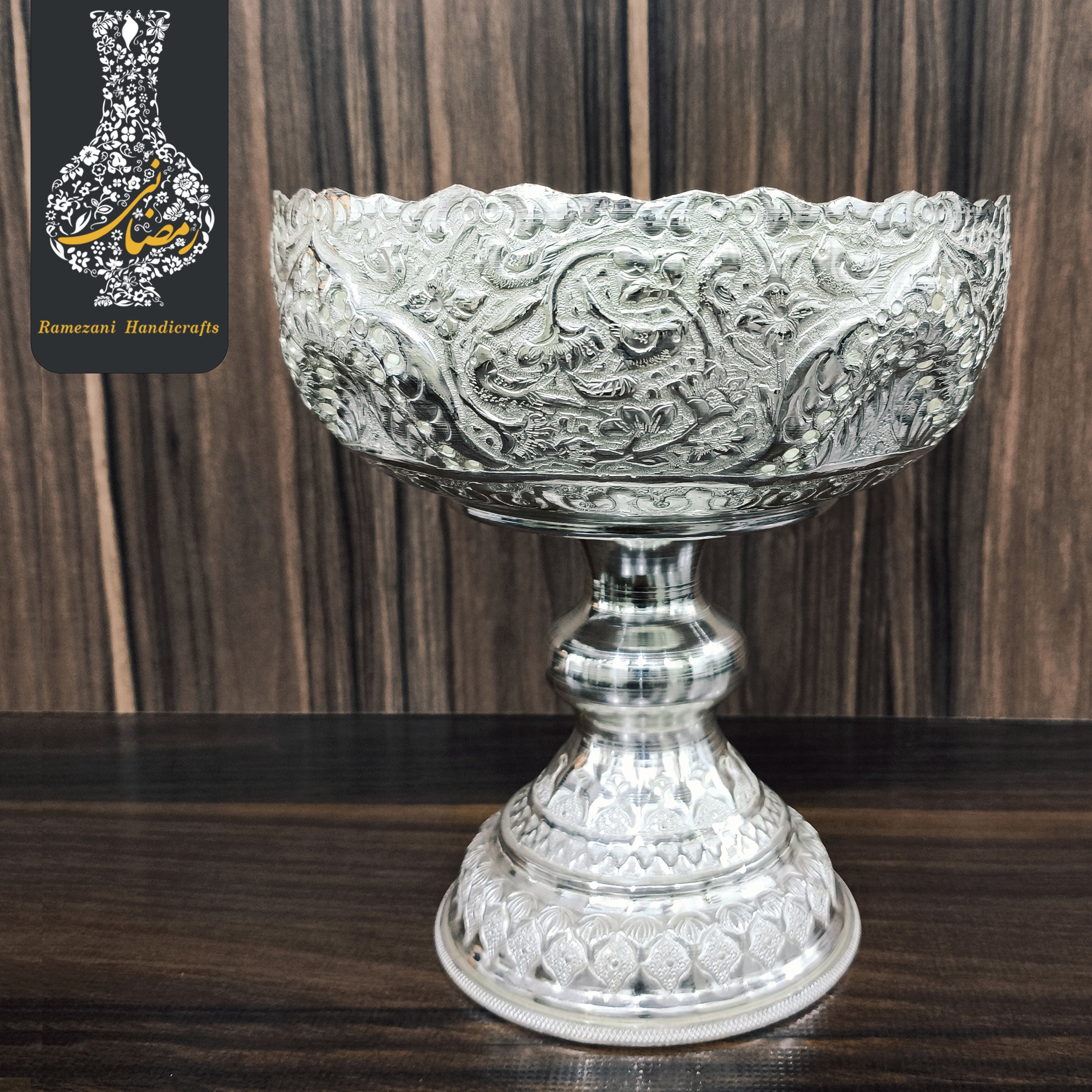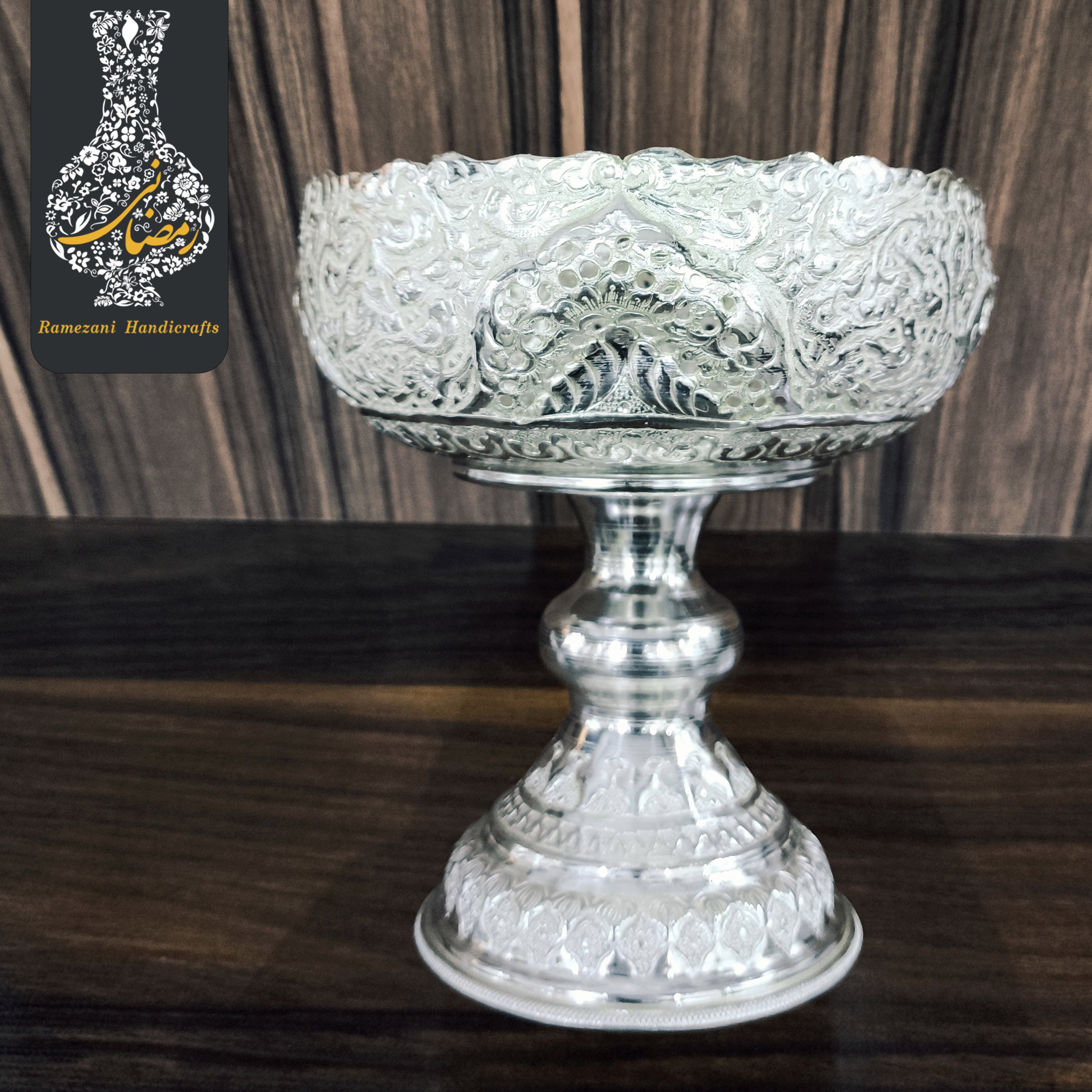 ✅️ عضو رسمی اتحادیه صنف صنایع دستی استان اصفهان ✅️ عضو رسمی سازمان میراث فرهنگی ، صنایع دستی و گردشگری 🔷️کد محصول : W96/4441🔷️ 🔶️ست آجیل خوری کعب دار و پایه دار متوسط سفید قلم اعلاء شماره 4🔶️ 🔷️نوع قلمزنی : گل و مرغ اعلاء بهمراه هنر ظریف شبکه بُری ارتقاع کاسه آجیل بزرگ: 17 سانتی متر قطر دهانه آجیل بزرگ : 15 سانتی متر ارتقاع کاسه آجیل کوچک: 7سانتی متر قطر دهانه آجیل کوچک: 9/5سانتی متر ✅️محصولی کاملا دستساز از برند تولیدی صنایع دستی محمدرضا رمضانی ✅️در ساخت این محصول از بهترین و با کیفیت ترین مواد اولیه با ضخامت بالا ، آبکاری نقره و بهترین لایه محافظ جهت جلوگیری از تغییر رنگ محصول استفاده شده است. ✅️این محصول دارای ضمانت نامه 48 ماهه کتبی و امضاء استادکار روی محصول میباشد. 🔶️قیمت برای یک سرویس کامل میباشد.🔶️