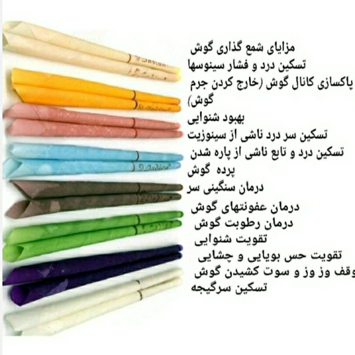 شمع گذاری گوش تسکین درد و فشار های سینوس ها پاکسازی کانال های گوش خارج کردن جرم گوش بهبود شنوائی تسکین سر درد ناشی از سینوزیت درمان سنگینی سر تقویت شنوائی تسکین سر گیجه توقف وزوز طرز استفاده از شمع گوش: شناخت صحیح طرز استفاده از شمع گوش باعث میشود از خطرات جانبی پاکسازی گوش با شمع به حداقل برسد.نحوه پاکسازی گوش با شمع بدین شرح است: ابتدا فرد به پهلو می خوابد. قسمت باریک شمع را داخل مجرای گوش قرار داده می شود. ناحیه پهن باید بیرون از گوش باشد. اکنون یک بشقاب یا ظرف را پایین شمع نگه داشته می شود. نحوه نگهداری و اندازه بشقاب باید به گونه ای باشد که بتواند از ریختن موم داغ به روی صورت ، گردن یا مو ها جلوگیری کند. برای احتیاط میتوان سر و گردن را با حوله یا پارچه ای مجزا پوشاند. هنگامی که متخصص طب سنتی از جایگیری شمع و ظرف مطمعن شد 10 الی 20 دقیقه شمع را روشن نگه می دارد. موم نباید وارد گوش شود . مسدود شدن توسط موم از خطرات و عوارض شمع گوش می باشد. در انتها بعد 15 دقیقه . شمع را خاموش کرده و با پد . لاله گوش را پاک می کنند.