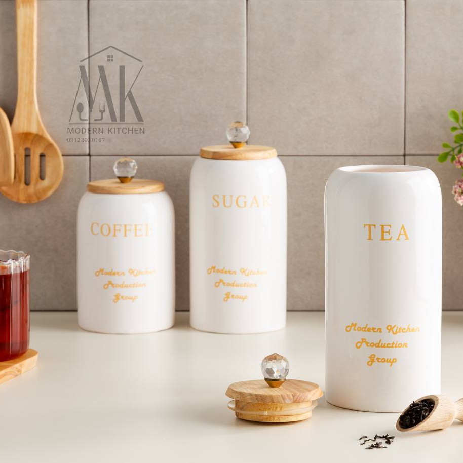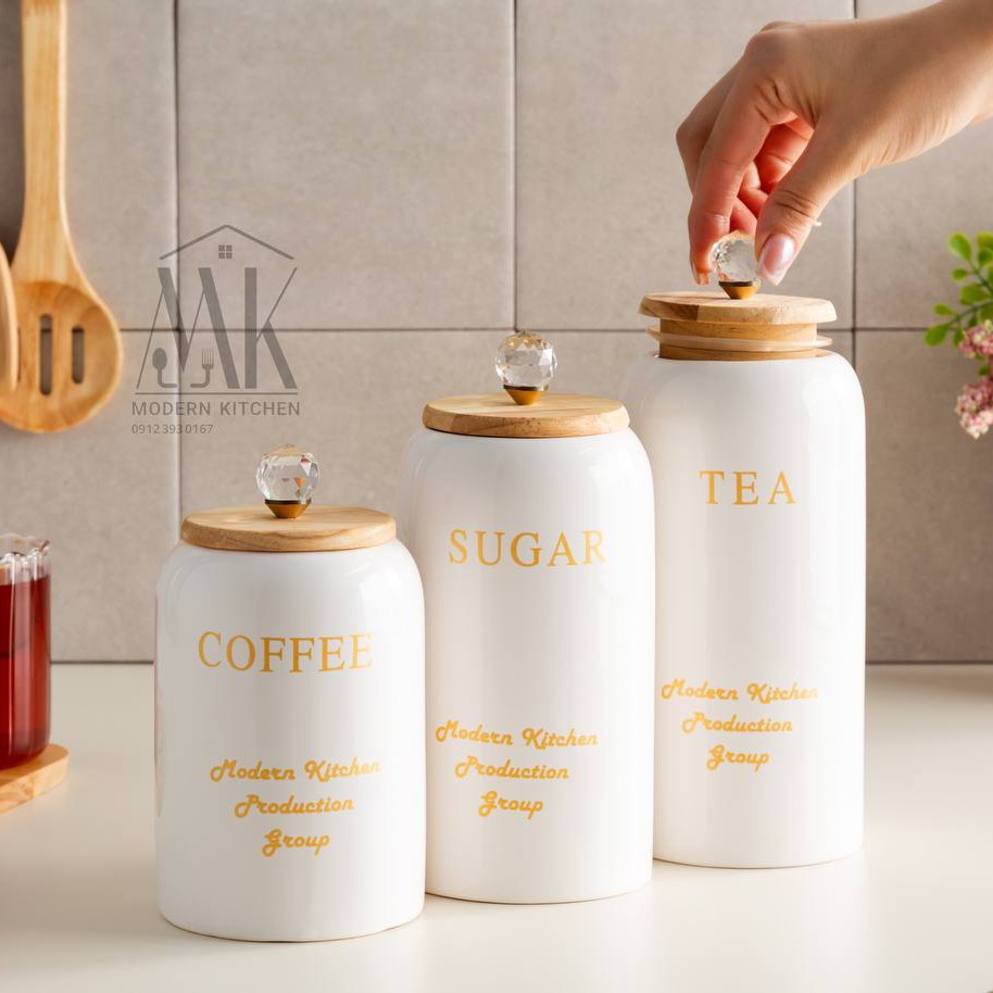 بانکه سرامیکی استوانه ای3عددی مناسب قند شکر چای قهوه بانکه بلند سرامیکی پاسماوری سرامیکی 3تکه مبلمونسرا مدل 288707