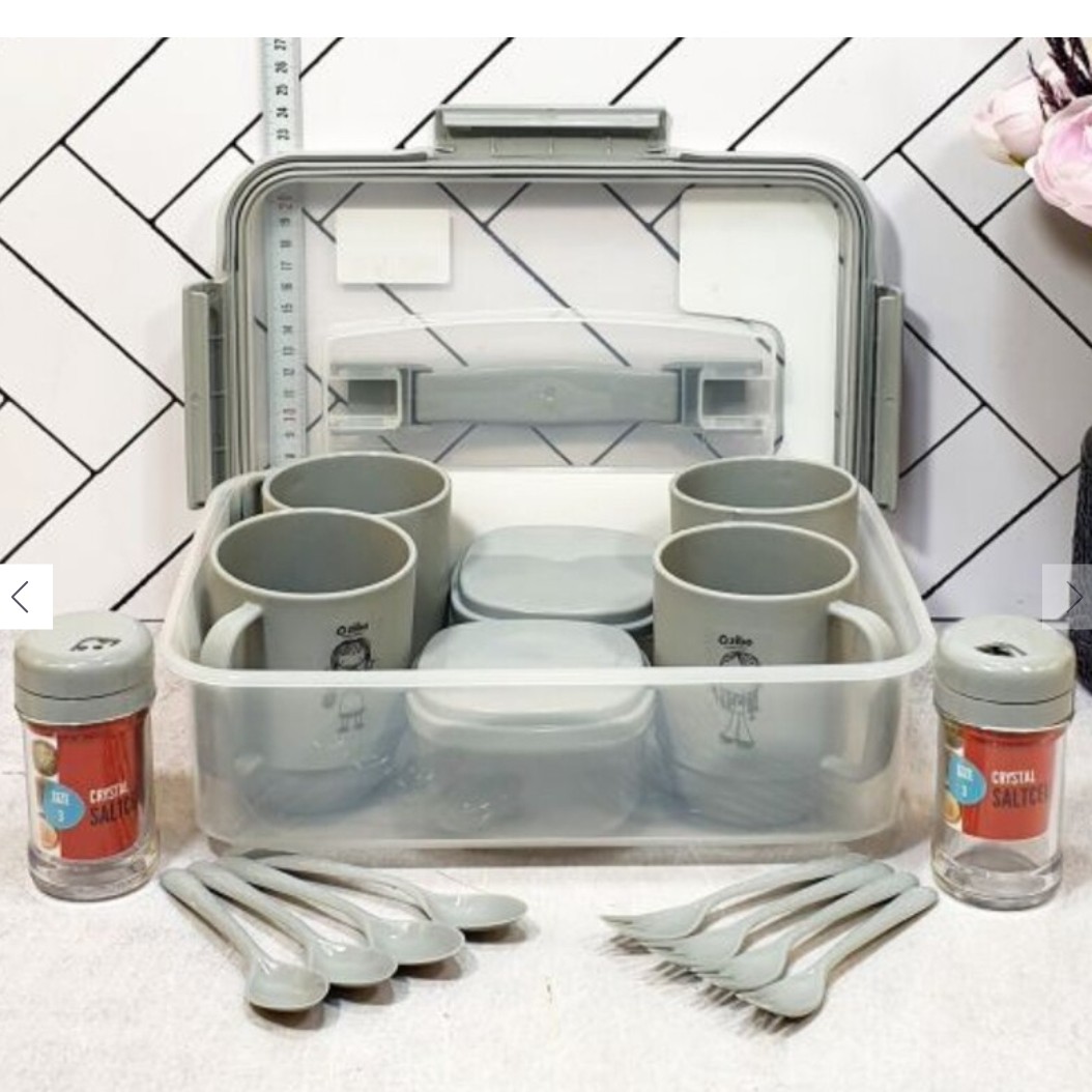 سرویس چای خوری مسافرتی 4 نفره 17 پارچه ، ست چای خوری بیرون بری با جعبه ، سرویس صبحانه خوری مسافرتی پلاستیکی، پس کرایه مبلمونسرا مدل 292413
