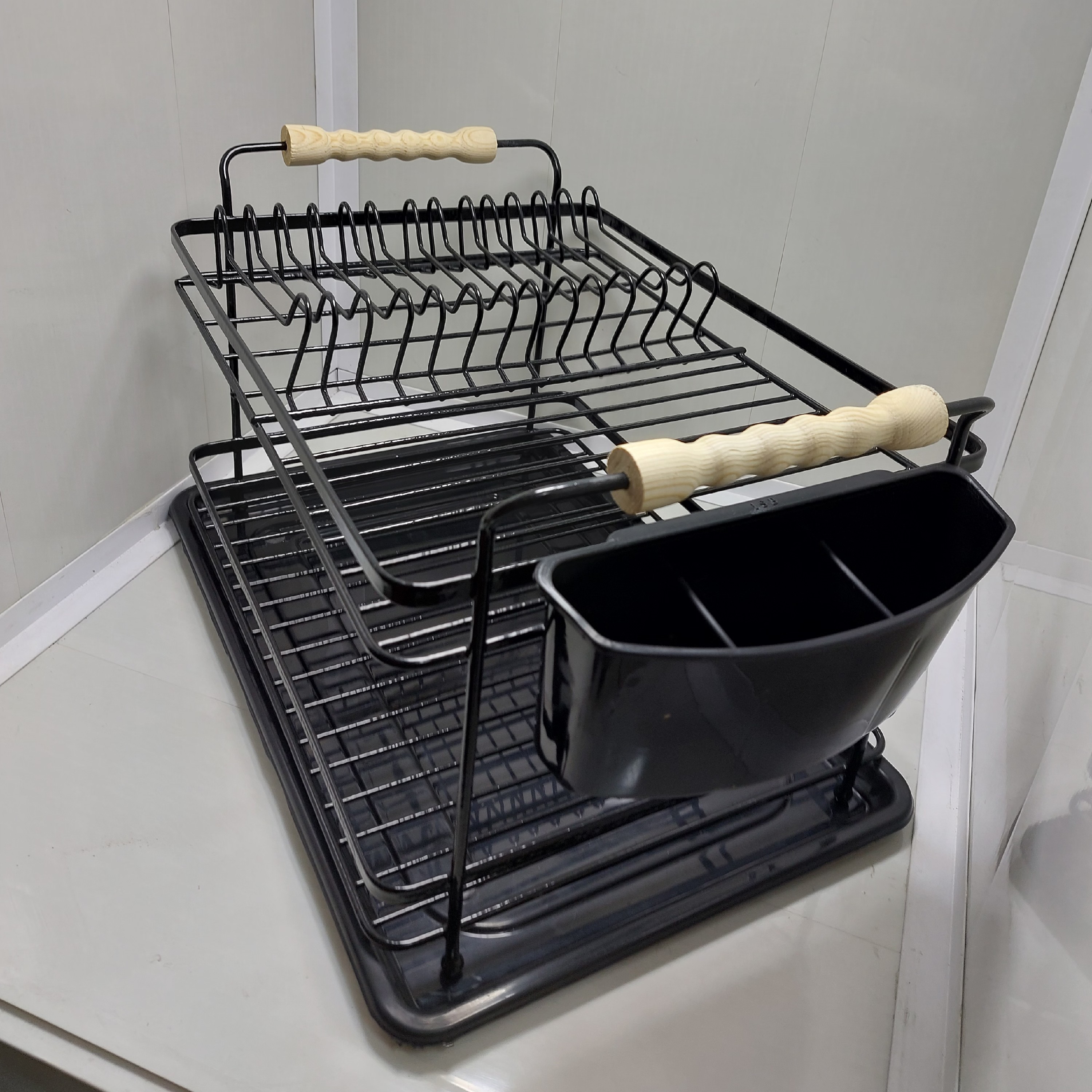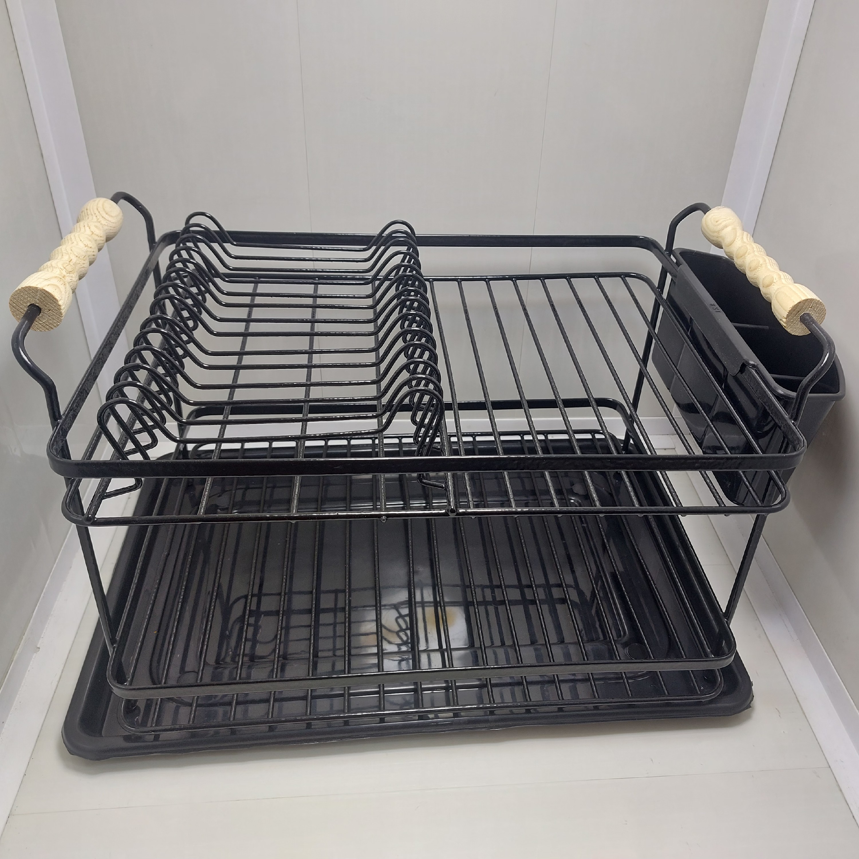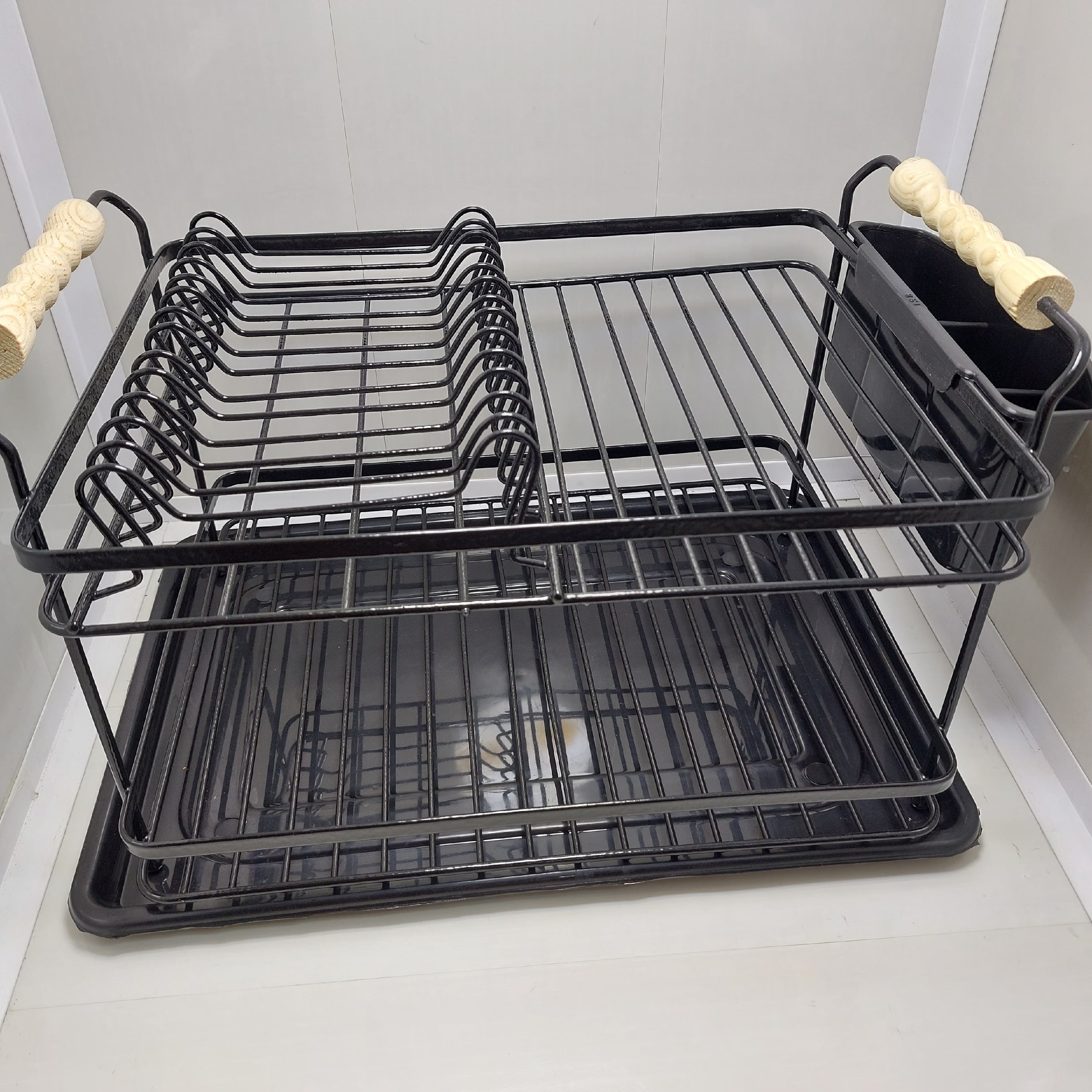 جاظرفی مشکی دو طبقه دسته چوبی ضد زنگ مدل روکش دارای جا قاشقی سایز مناسب