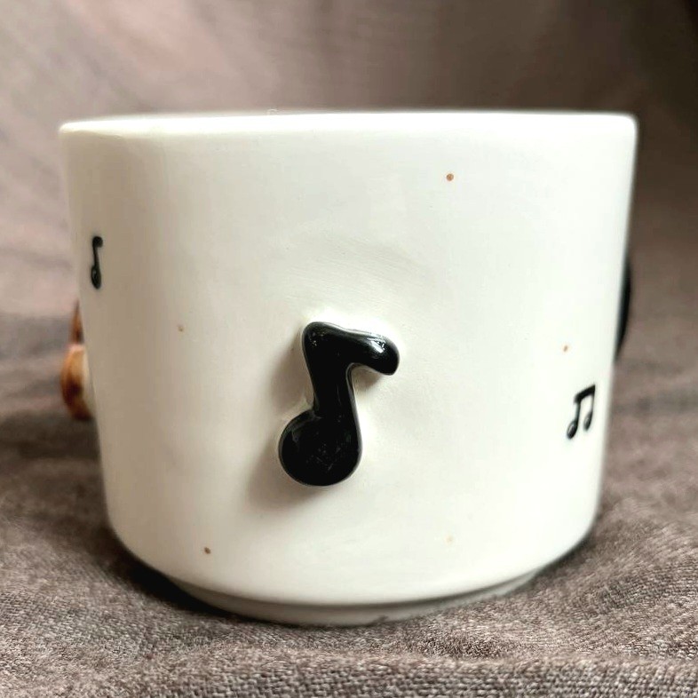 ماگ سرامیکی دستساز طرح پیانو و ویالون پشت و روی ماگ پیانو و نت موسیقی و ویالون برجسته داره قطر دهانه 9سانت ارتفاع 8سانت