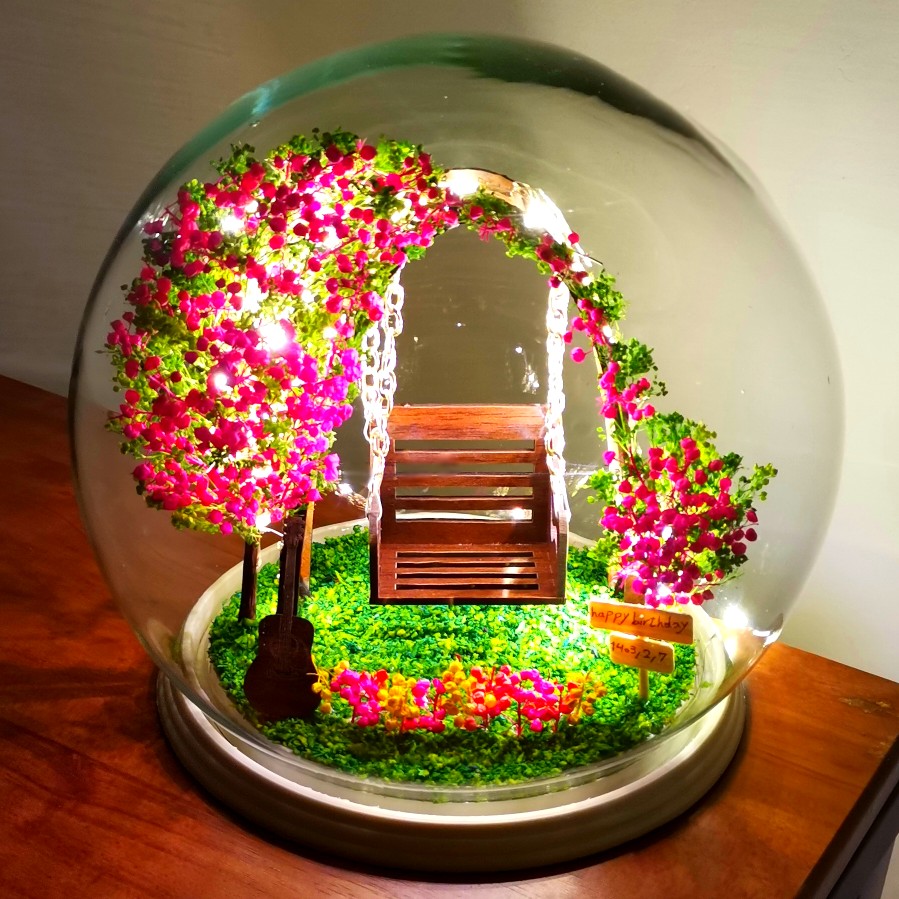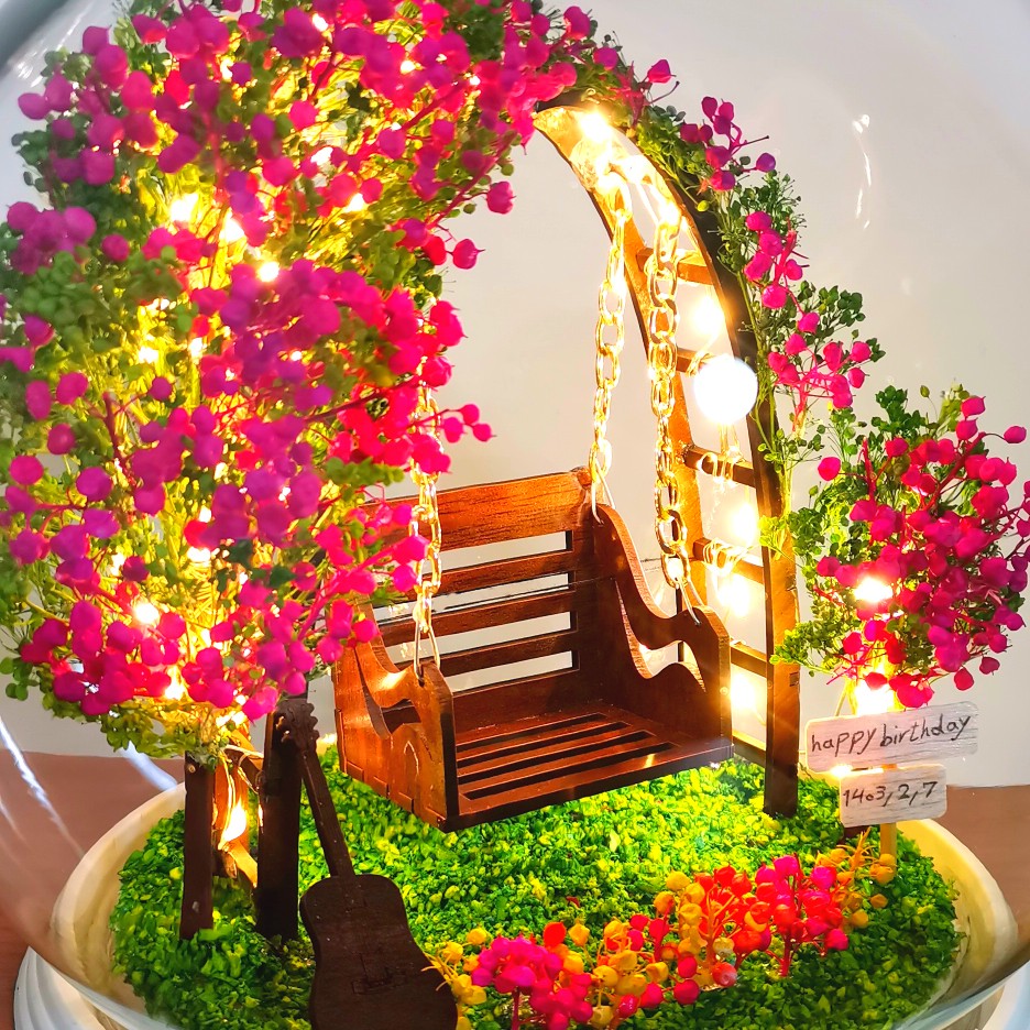 یک چراغ خواب بسیار شیک و عامه پسند است و یک کادو تولد برای افرادی که به هنر موسیقی هم علاقه دارند به شمار میرود. بینظیرترین هدیه روز دختر و مناسبت های شما در توضیح ویژگی های ظاهری این محصول زیبا باید بگوییم که بر روی آن، یک محفظه شیشه ای نصب شده است تا گرد و خاک به داخل آن نفوذ نکند. درنتیجه ماندگاری و دوام محصول افزایش یافته و متریال های داخلی همیشه سالم و تمیز میمانند و شما میتوانید به راحتی به وسیله یک دستمال مرطوب آن را تمیز کنید. لازم به ذکر است اجزای مینیاتوری این گوی زیبا مانند : گیتار_ درخت بهاری . تاب و…. همگی ثابت هستند و یا به عبارتی دیگر قابلیت جداسازی ندارند. شما با خریداری و استفاده از این دکوری فوق العاده دوست داشتنی، زیبا و دلنشین، اکسسوری و دکوراسیون منزل خود را متحول و به روز خواهید نمود. به علت کیفیت بالای متریال اولیه در ساخت این ماکت شیشه ای جذاب، شما میتوانید مدت زمان زیادی بدون افت کیفیت و به بهترین شکل ممکن از این دکوری تزئینی ویژه و دوست داشتنی استفاده کنید. همچنین المانهای مینیاتوری داخلی این ماکت شیشه ای جذاب و دوست داشتنی، با نهایت دقت و ظرافت ساخته شده است که این موضوع جذابیت بصری این گوی ویژه و زیبا را تا میزان قابل ملاحظه ای افزایش میدهد. چراغ خواب تاب بهاری یکی از بهترین گزینه ها برای استفاده بر روی میز، عسلی، میز کامپیوتر، کتابخانه، میز کنسول، میز تلویزیون و…. است و شما میتوانید با استفاده از این ماکت شیشه ای جذاب و مدرن آرامشی دلنشین به دکوراسیون منزل خود ببخشید. چراکه این گوی ویژه و چشمنواز در هر محلی که قرار بگیرد همچون نگینی در آن محل میدرخشد و جلوه گری میکند.