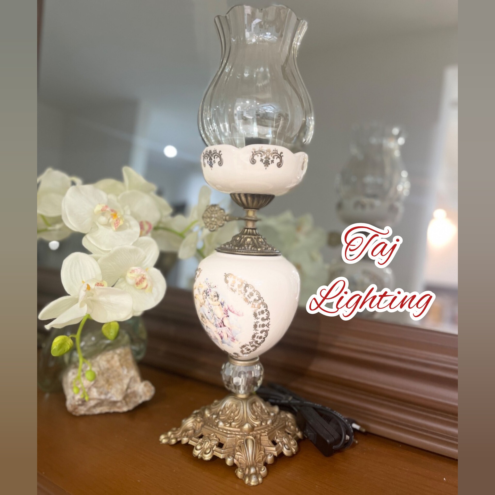 💥قیمت درج شده ، قیمت هر عدد چراغ می باشد جنس لاله : بلور رنگ لاله : شامپاینی جنس وسط تنه : سرامیک رنگبندی وسط تنه : سفید، زرشکی، سورمه ای ، فیروزه ای ، یشمی جنس پایه آلیاژ با آبکاری آنتیک