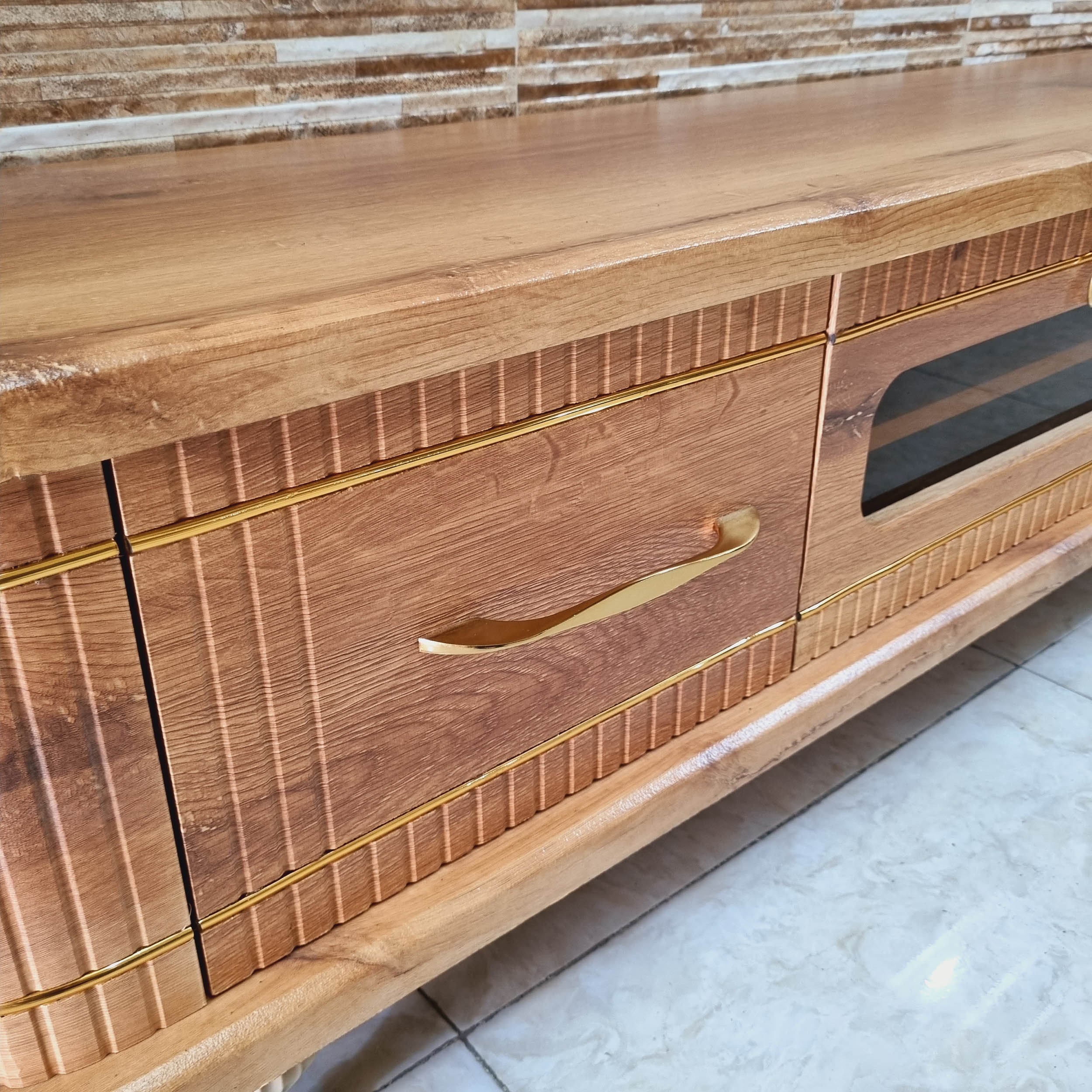 میز تلویزیون شبستان مدل 1032 طول 160 رنگ بلوط تمام ام دی اف مبلمونسرا مدل 223954