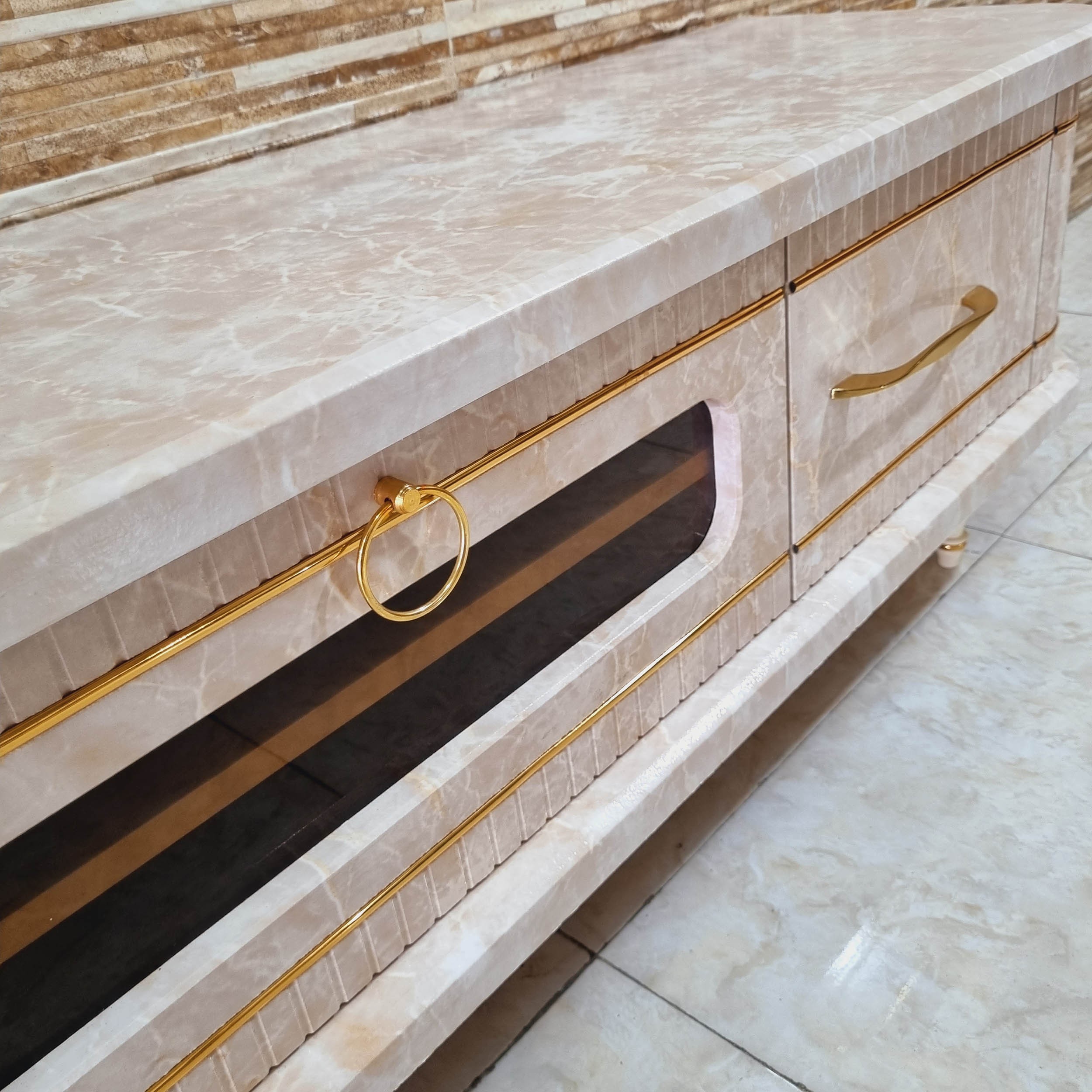 میز تلویزیون شبستان مدل 1032 رنگ مرمر طول 160 تمام ام دی اف مبلمونسرا مدل 222540