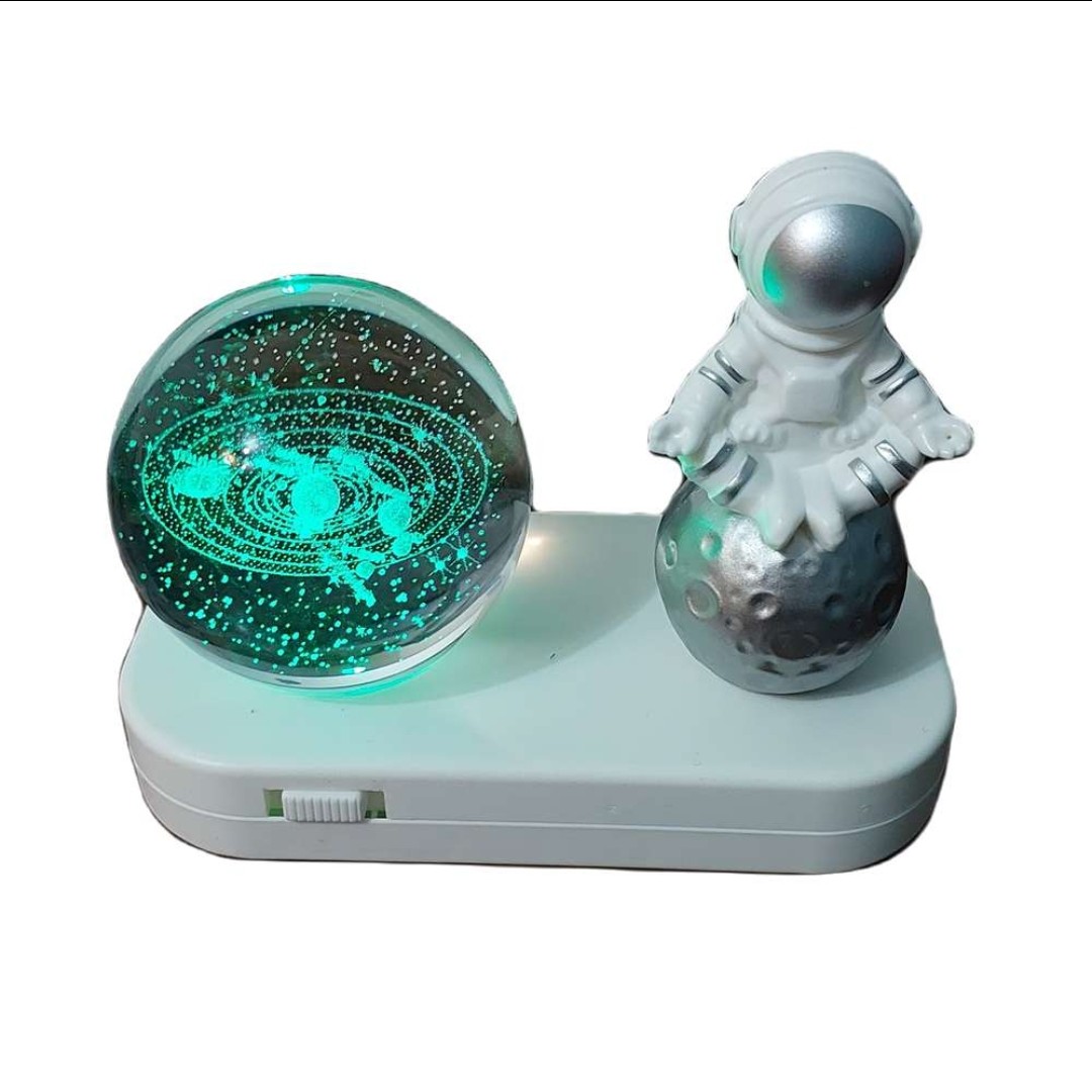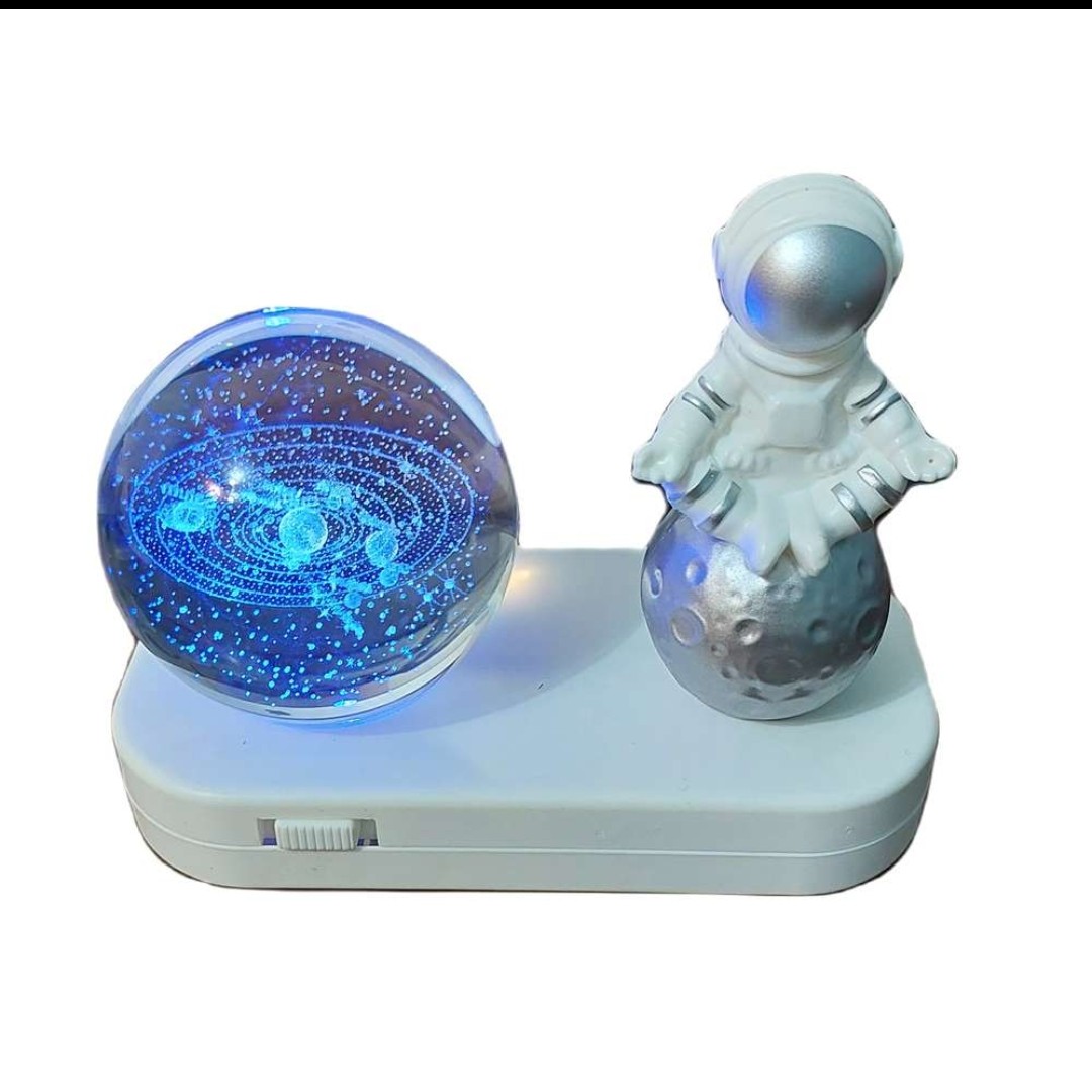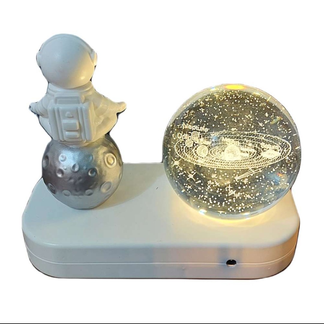 چراغ خواب شارژی با کابل USB دارای گوی طرح منظومه شمسی با قطر 6 سانتی متر میباشد که در زیر گوی چراغ LED با نور ثابت آفتابی و نور چند رنگ متغیر جلوه خاصی به فضای اتاق میبخشد. همچنین در کنار گوی مجسمه ای از فضانورد قرار گرفته است که زیبایی آن را دو چندان میکند. شما میتوانید این چراغ را از طریق کابل USB به هر منبع تغذیه ای که دارای پورت USB است متصل کنید و آن را شارژ کنید بعد از شارژ کامل میتوانید از آن استفاده کنید به طور کلی چراغ خواب شارژی با کابل USB با مجسمه فضانورد زیبا، رنگهای مختلف نور گرم و دلپذیر، یک وسیله تزئینی جذاب و کاربردی برای اتاق شماست که به شما احساس آرامش و رضایت می دهد.
