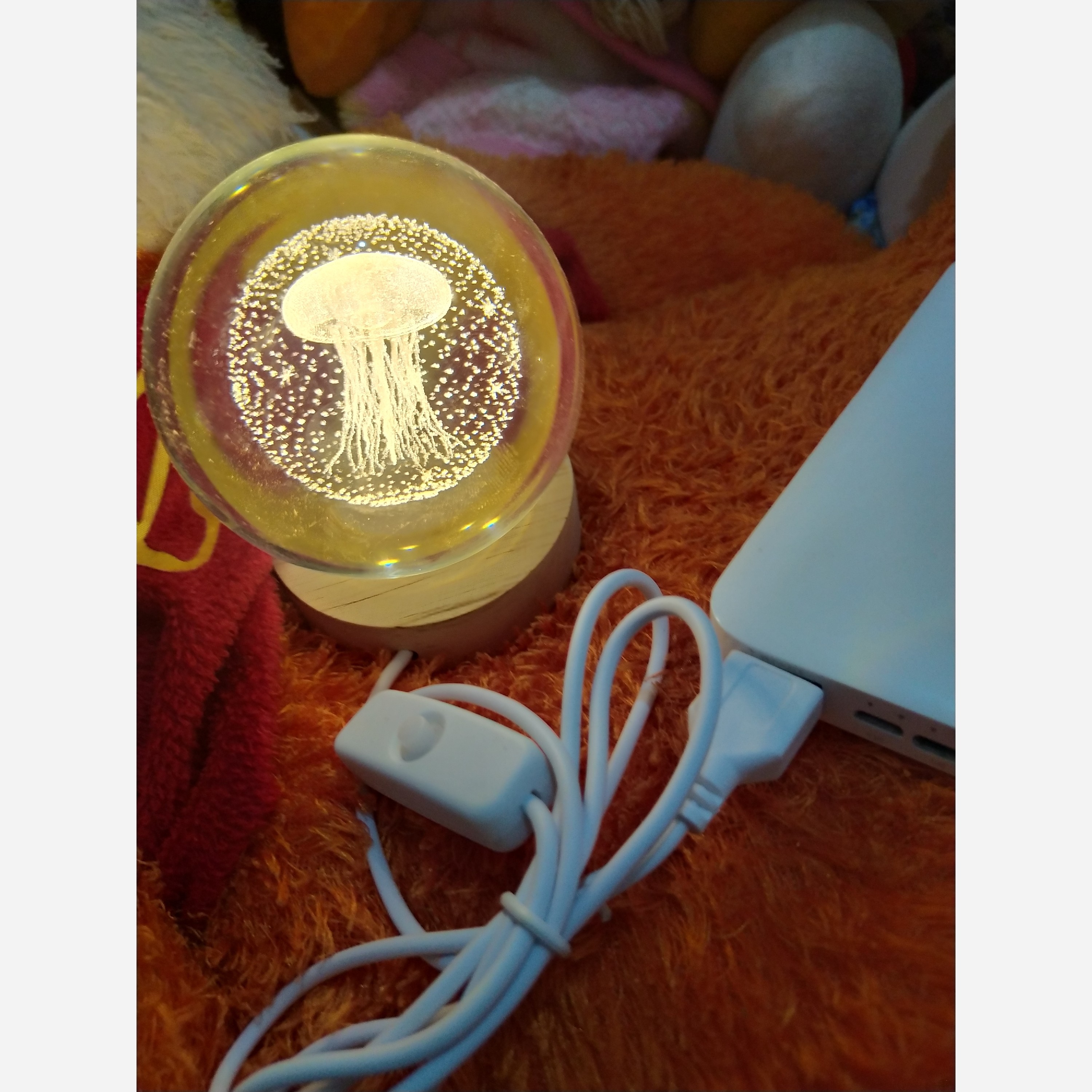 چراغ خواب گوی کریستالی طرح عروس دریایی سایز 8 با پایه چوبی