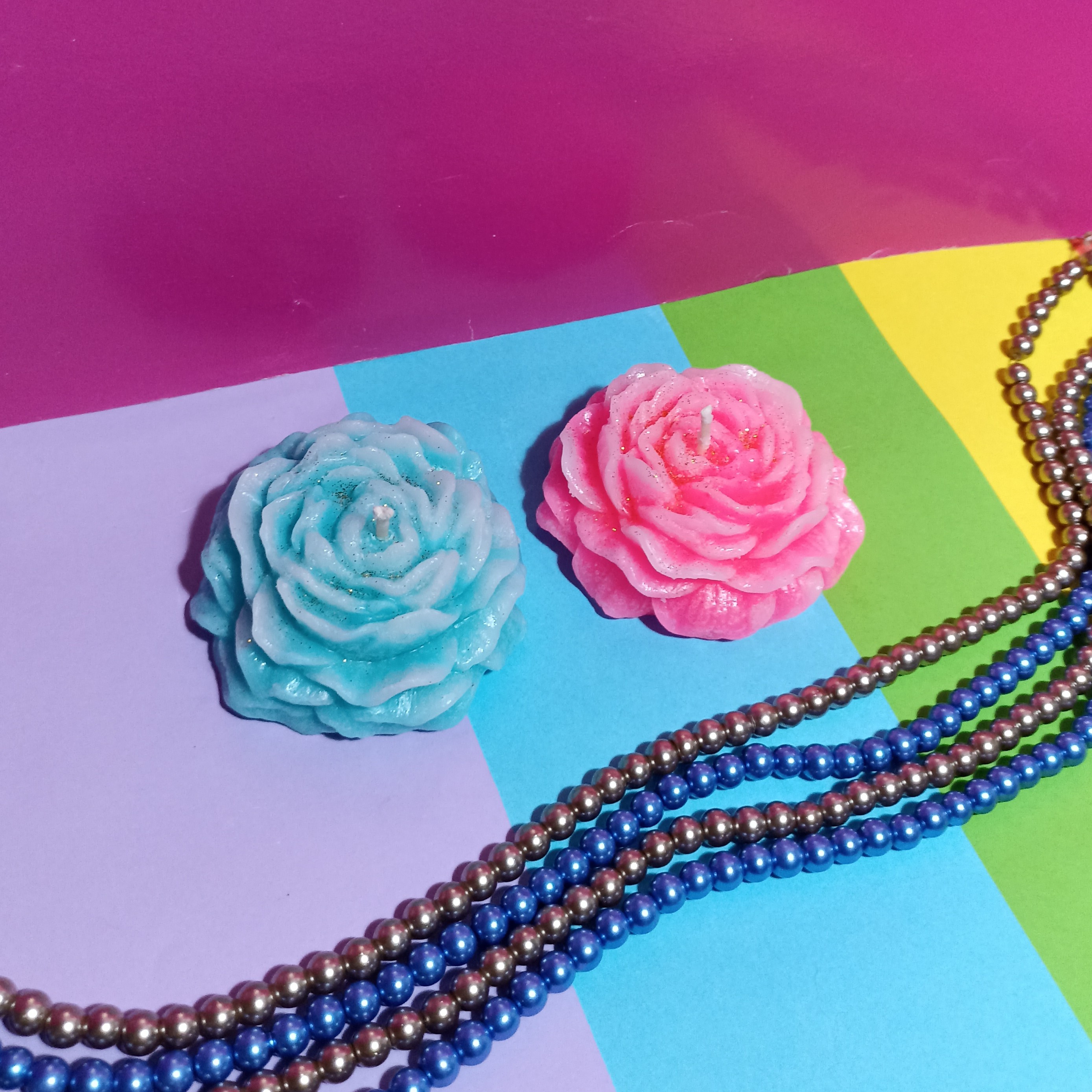شمع آلاله دورنگ به رنگهای آبی و سفید ,صورتی و سفید ,سبز و سفید,یاسی و سفید قابل ارسال به سراسر کشور