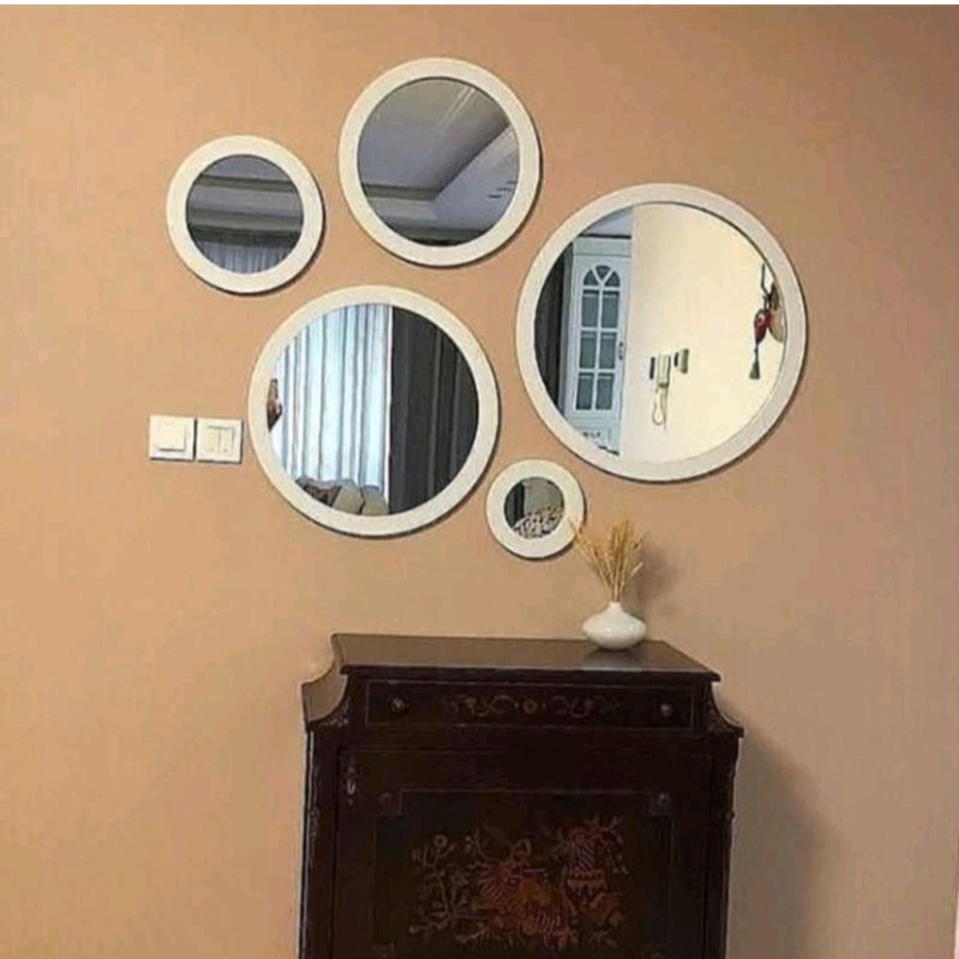 آینه دکوراتیو 5عددی در دو رنگ سفید و طلایی و نقره ای کیفیت عالی فروش عمده و همکاری هم داریم.