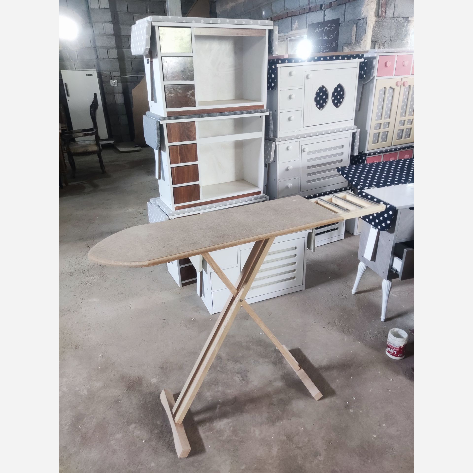 میز اتو تمام چوب روس با پارچه طوسی و قهوه ای و رنگ پارچه به انتخاب خود مشتری مبلمونسرا مدل 223617