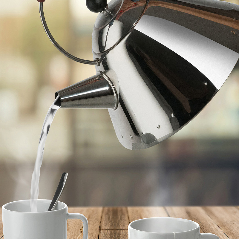 السی یکی از مهمترین شرکت های دیزاین در دنیا می باشد که بیش از 100 سال پیش در ایتالیا تاسیس گردید. این شرکت برای طراحی محصولات خود با بزرگترین طراحان همچون Richard Sapper, Philippe Starck, Aldo Rossi, Guido Venturini و... همکاری داشته و محصولاتی با کیفیت تولید میکند که هر کاربری که زیبایی و خاص بودن را میپسند، شیفته محصولات ALESSI میگردد. محصولات این شرکت اکثرا ساخت ایتالیا بوده و کیفیت و زیبایی آن بی نظیر است. در دوران کتری های برقی، کتری کلاسیک Alessi Bollitore 9093 یکی از زیباترین و با کیفیت ترین کتری هایی است که می توانید در خانه خود داشته باشید. زمانی که آب داخل کتری به مرحله جوشیدن میرسد پرنده روی کتری شروع به سوت کشیدن میکند که قابلیت جدا شدن از سر کتری را هم دارد. جنس کتری استیل براق 18/10 بوده و برای کاربرانی که از گاز یا اجاق برقی استفاده مینمایند مناسب است. طراح این محصول معمار بزرگ Michael Graves بوده که از سال 1962 میلادی استاد دانشگاه Princeton ، طراح ده ها آسمان خراش معروف دنیا و طراح ساختمان شاخص 425 در خیابان پنجم نیویورک می باشد. وی با الهام گرفتن از هنر اروپا و فرهنگ دهه 80 امریکا این محصول را طراحی کرده و جوایز بسیاری را کسب نموده است. ارتفاع کتری 22.5 سانتی متر و قطر ان 22 سانتیمتر و آن 2 لیتر می باشد. رویکرد متفاوت ALESSI باعث متمایز شدن محصولات این شرکت شده ، به گونه ای که علاوه بر قابلیت های عملکردی محصولات، زیبایی خارق العاده ای هم دارند که میتوان به عنوان دکور از انها استفاده کرد. این محصول ساخت ایتالیا (Made in Italy) میباشد.