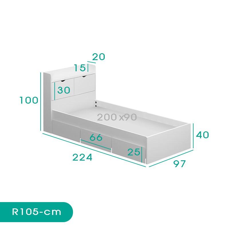 تخت خواب اسمردیس مدل R105 با ظاهری ساده و زیبا، مناسب دکوراسیون منزل با طراحی مینیمال است. تخت خواب اسمردیس مدل R105 دارای 3 کشو , 2 درب و 1 قفسه کاربردی و جادار می باشد. تخت خواب اسمردیس مدل R105 دارای ابعادی مناسب است و ابعاد تشک مورد استفاده در این تخت 90×200 می باشد جنس محصول ملامینه می باشد. ابعاد طول224 سانتی متر عرض 97 سانتی متر ارتفاع 100 سانتی متر سایز تشک 90×200 برای دریافت کالیته رنگ در ابعاد بزرگتر روی دکمه گفت وگو کلیک کنید
