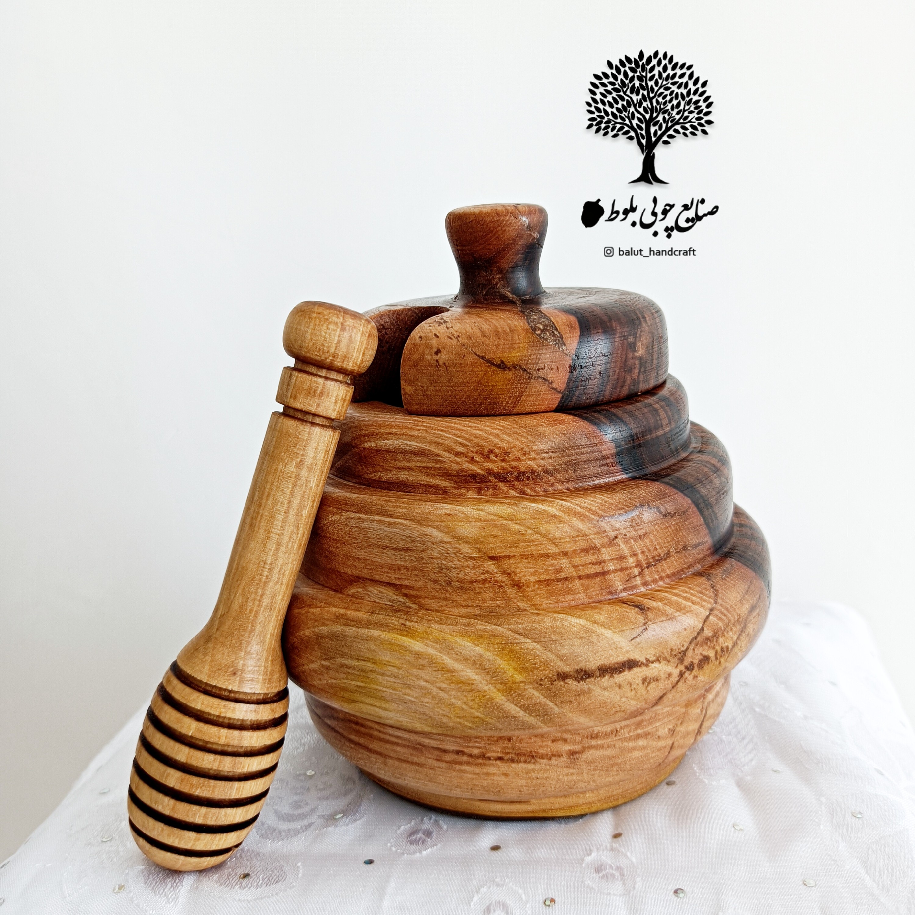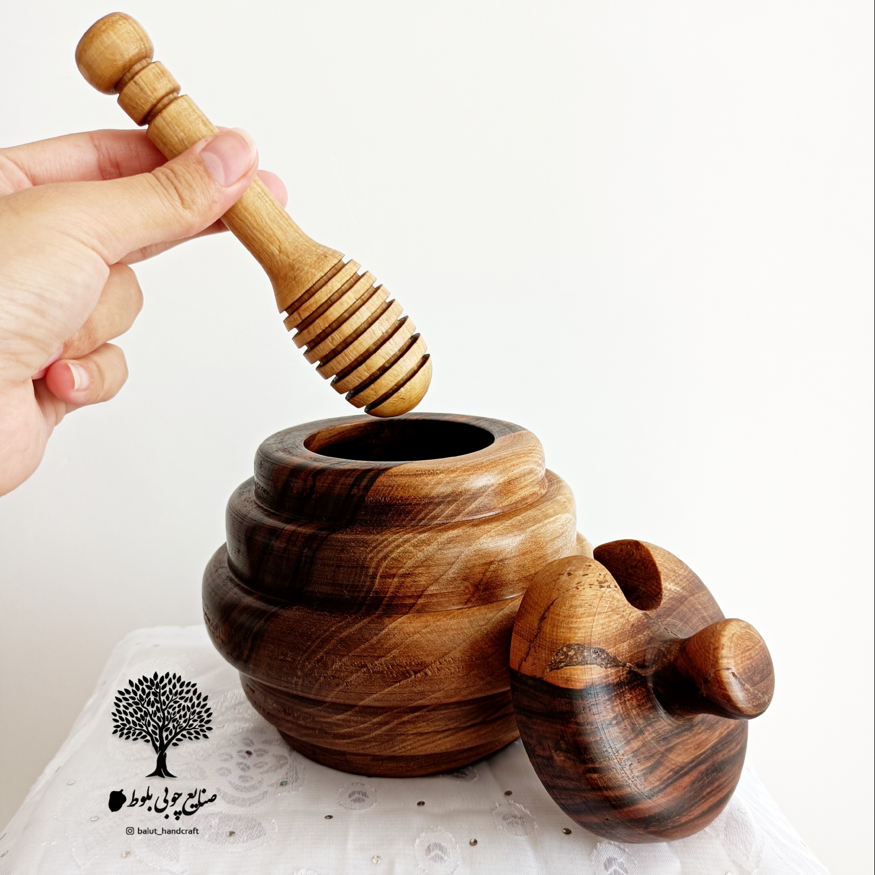 خمره عسل چوبی جنس: چوب گردو پوشش: روغن گیاهی بیشینه قطر: 14 سانتی متر ارتفاع: 15 سانتی متر ارتفاع دسته: 13/5 سانتی متر ابعاد طبق سلیقه مشتری قابل تغییر است.
