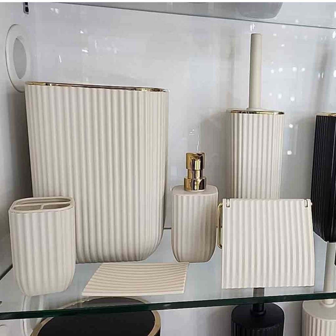 ست بهداشتی کامل زبرا همارا شامل سطل با درب بادبزنی فرچه مخزن دار جای مایع جای مسواک جای صابون و جای رول دستمال جنس abs کیفیت درجه یک جنس پلاستیک فشرده ABS ضد خش و ضد لک...👍 در 4درنگ زیبا کیفیت عالی و درجه 1🌱 در 4 رنگ کرم با لبه طلایی مشکی با لبه طلایی سفید با لبه نقره ای طوسی با لبه نقره ای سطل و فرچه همارا هم جدا فروخته میشود