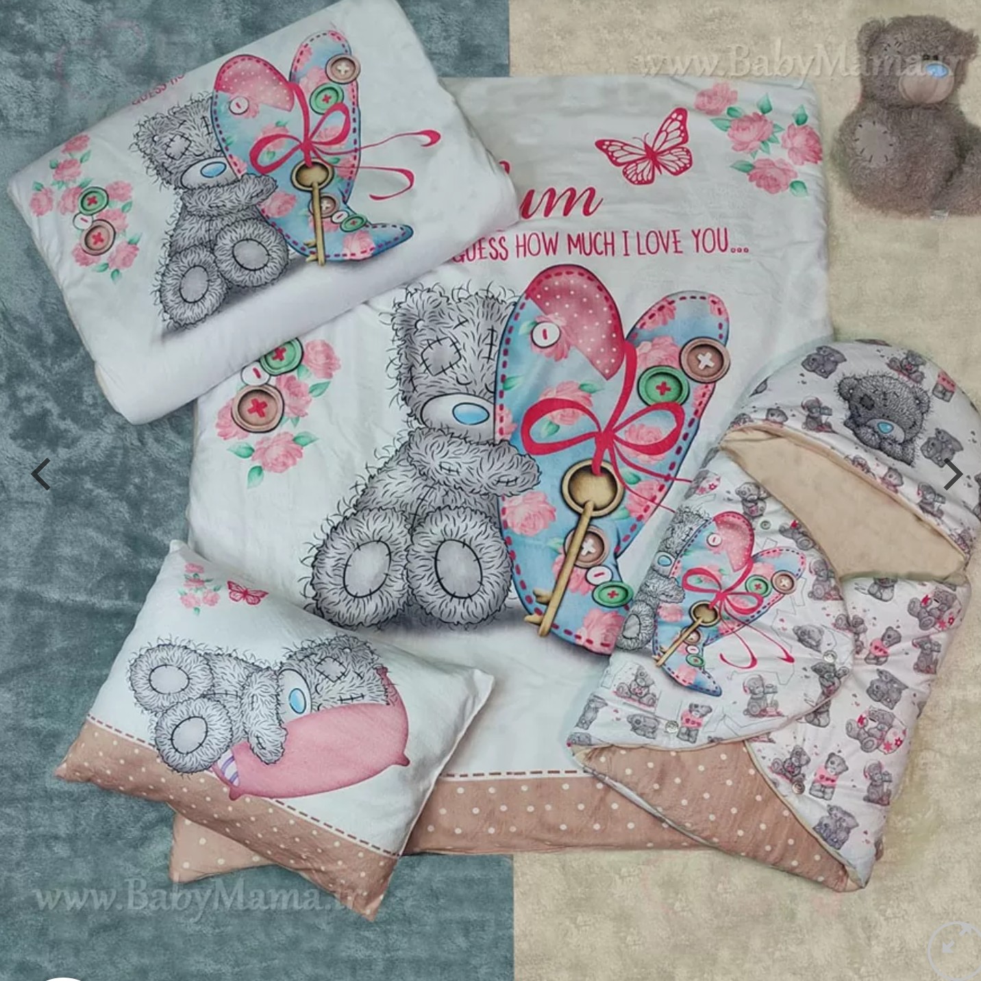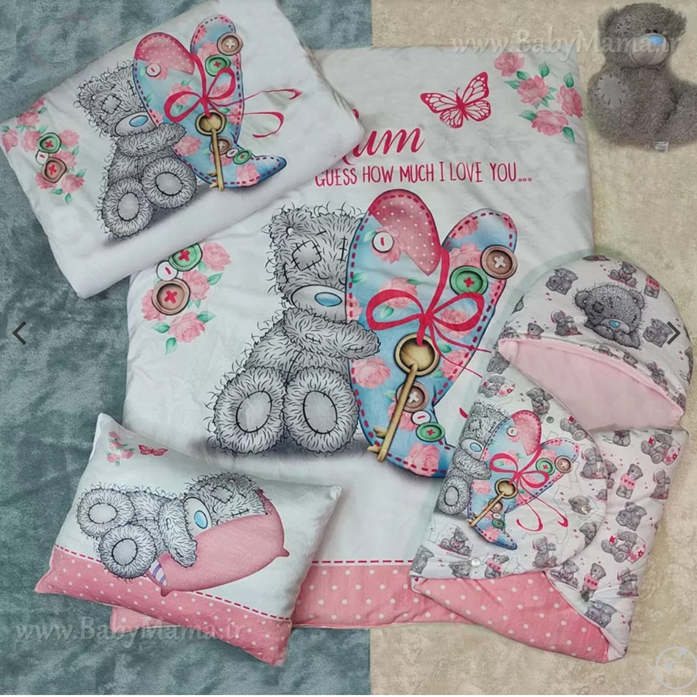 سرویس خواب نوزادی4 تیکه جنس مخمل طرح تدی. بالشت. تشک. لحاف. قنداق یا کیسه خواب مبلمونسرا مدل 227386