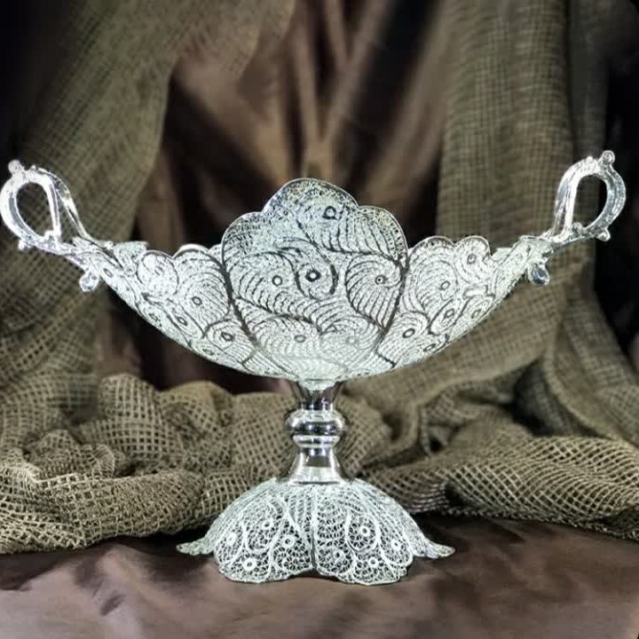 📌یکی از تولیدات مجموعه هنری تولید انواع کشکول می باشد. 💯مجموعه 4 مدل کشکول تولید می کند که مجموعا در 16 مدل در اندازه های مختلف تولید می شود. ✅این کشکول با توجه به شکل دسته ای که دارد به کشکول دسته دوبل معروف است و دارای 4 سایز می باشد. ✅ این کشکول دسته دوبل شماره 2 با ارتفاع 23 سانتی متر می باشد که برای پذیرایی شیرینی، گز، شکلات استفاده می شود. 🎁 این کشکول زیبا برای هدیه به عزیزان و آشنایان نیز گزینه مناسبی است. 🧐 برای خرید محصولات و ظروف ملیله از آرم که با حروف انگلیسی در ظرف حک شده مطمئن شوید . ☑️جنس محصولات ملیله از مس است که در فرآیندهای تخصصی آبکاری نقره شده است. 💯روی محصولات ملیله برند پوششی قرار دارد که باعث جلوگیری از سیاه شدن می شود. ✅کلیه مراحل تولید محصولات ملیله که بیش از 50 مرحله است با دست هنرمندان اصفهانی انجام شده و هیچ ماشینی در آن دخالت ندارد. ملیله از جمله صنایع دستی محبوب ایرانیان می باشد. 📌برند از معتبرترین و با سابقه ترین برندهای تولیدکننده ملیله می باشد که بیش از 20سال سابقه فعالیت دارد و کلیه محصولات که بیش از 150 قلم جنس می باشد دارای ضمانت کیفیت سه ساله می باشد. 🤝 در با سلام سعی کرده ایم کلیه تولیدات را در جوی سالم و مطلوب از تولیدبه مصرف و بدون واسطه به دست شما مصرف کننده عزیز در هر جای ایران عزیز که باشید برسانیم. 🚿مهم ترین شاخصه محصولات ملیله کاری مصرفی بودن آنهاست که در عین زیبایی و هنر، دارای دوام رنگ و ضمانت کیفیت حتی با شستشو و استفاده می باشد. 😰نکته: از ریختن جوهر نمک ، وایتکس و مواد اسیدی روی ظروف ملیله خودداری فرمائید. 💞در این مجموعه با تنوع فراوان جهیزیه کامل عروس خانم تولید می شود. 🎁 محصولات مجموعه هنری صنایع دستی هدیه ای است ارزشمند ماندگار، بی نظیر و خاص.