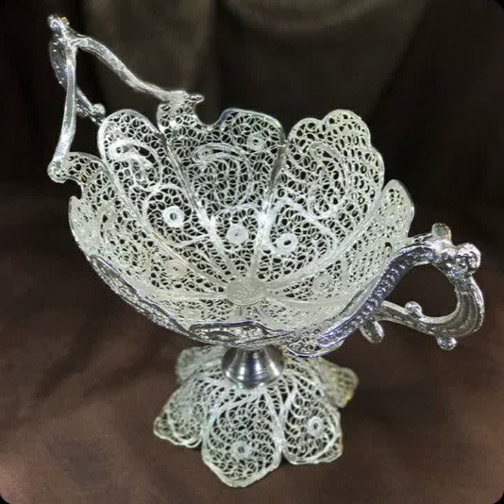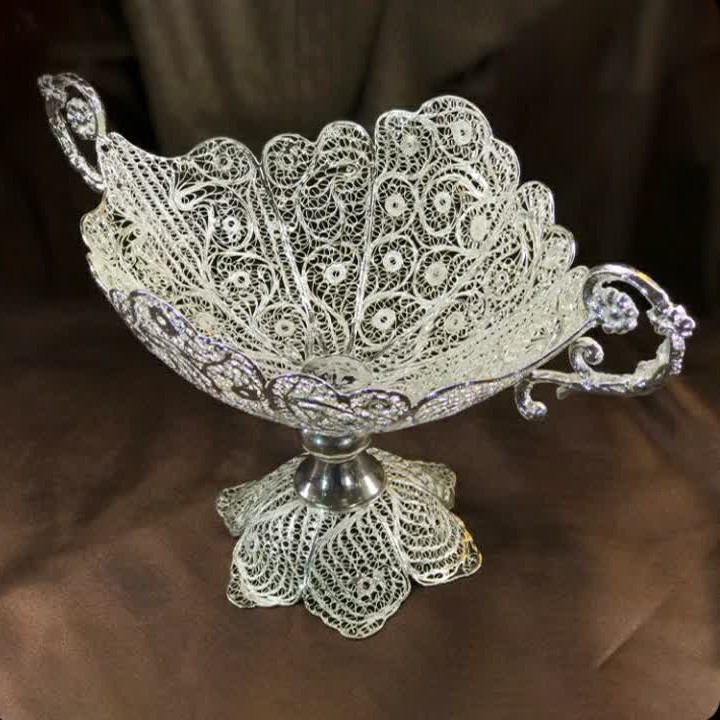 📌یکی از تولیدات مجموعه هنری تولید انواع کشکول می باشد. 💯مجموعه 4 مدل کشکول تولید می کند که مجموعا در 16 مدل در اندازه های مختلف تولید می شود. ✅این کشکول با توجه به شکل دسته ای که دارد به کشکول دسته دوبل معروف است و دارای 4 سایز می باشد. ✅ این کشکول دسته دوبل شماره 3 با ارتفاع 27 سانتی متر می باشد که برای پذیرایی شیرینی، گز، شکلات استفاده می شود. 🎁 این کشکول زیبا برای هدیه به عزیزان و آشنایان نیز گزینه مناسبی است. 🧐 برای خرید محصولات و ظروف ملیله از آرم که با حروف انگلیسی در ظرف حک شده مطمئن شوید . ☑️جنس محصولات ملیله از مس است که در فرآیندهای تخصصی آبکاری نقره شده است. 💯روی محصولات ملیله برند پوششی قرار دارد که باعث جلوگیری از سیاه شدن می شود. ✅کلیه مراحل تولید محصولات ملیله که بیش از 50 مرحله است با دست هنرمندان اصفهانی انجام شده و هیچ ماشینی در آن دخالت ندارد. ملیله از جمله صنایع دستی محبوب ایرانیان می باشد. 📌برند از معتبرترین و با سابقه ترین برندهای تولیدکننده ملیله می باشد که بیش از 20سال سابقه فعالیت دارد و کلیه محصولات که بیش از 150 قلم جنس می باشد دارای ضمانت کیفیت سه ساله می باشد. 🤝 در با سلام سعی کرده ایم کلیه تولیدات را در جوی سالم و مطلوب از تولیدبه مصرف و بدون واسطه به دست شما مصرف کننده عزیز در هر جای ایران عزیز که باشید برسانیم. 🚿مهم ترین شاخصه محصولات ملیله کاری مصرفی بودن آنهاست که در عین زیبایی و هنر، دارای دوام رنگ و ضمانت کیفیت حتی با شستشو و استفاده می باشد. 😰نکته: از ریختن جوهر نمک ، وایتکس و مواد اسیدی روی ظروف ملیله خودداری فرمائید. 💞در این مجموعه با تنوع فراوان جهیزیه کامل عروس خانم تولید می شود. 🎁 محصولات مجموعه هنری صنایع دستی هدیه ای است ارزشمند ماندگار، بی نظیر و خاص.