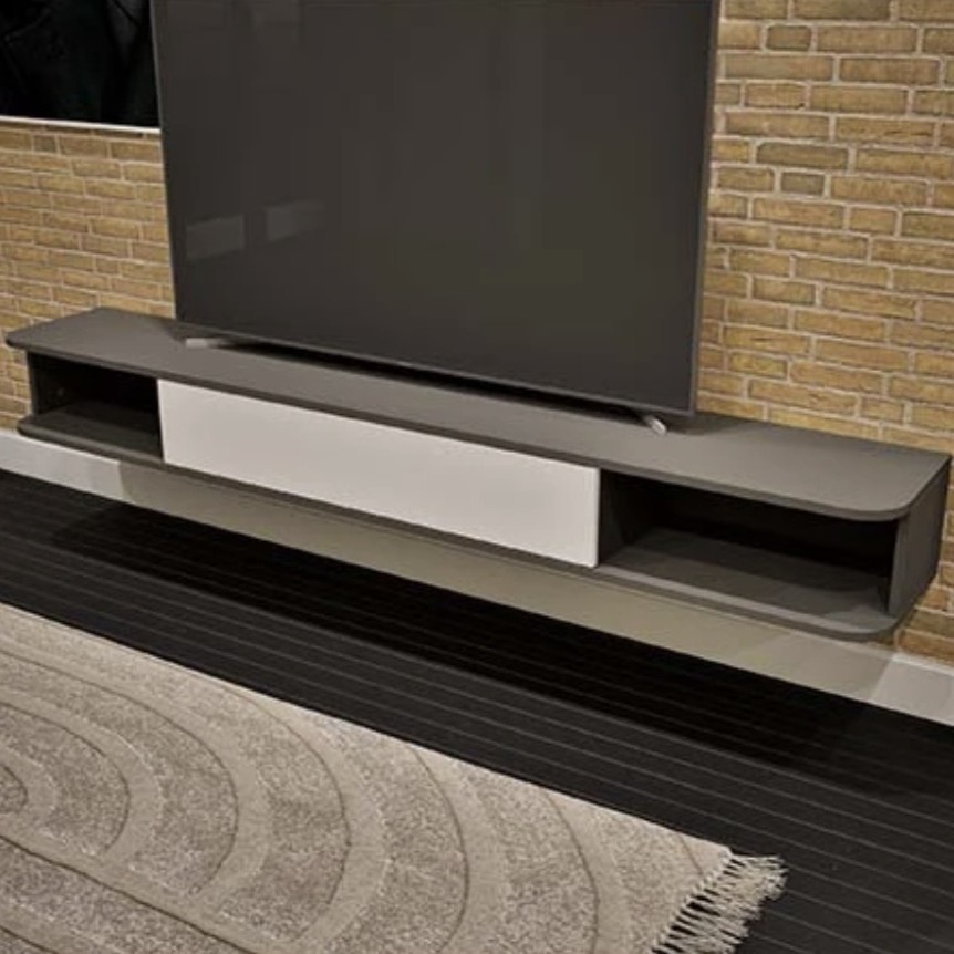 بدنه و درب میز تلویزیون TF-124 از جنس MDF درجه یک و ضد خش می باشد. TF-124 دارای یک کشو در وسط کار می باشد. این میز تلویزیون دیواری می باشد و به دیوار پیچ و رول پلاک می شود ، لذا قطعه پشتی این میز تلویزیون بجای ورق ام دی اف 3 میلیمتر از ورق ام دی اف 16 میلیمتری استفاده شده است ، که باعث استحکام بیشتر این محصول میشود. پیشنهاد میشود درکلیه میزهای تلویزیون دیواری ، تلویزیون را با براکت مخصوص نصب دیواری به دیوار متصل کنید. سفید / گردویی / فندقی / طوسی و ترکیب این چهار رنگ