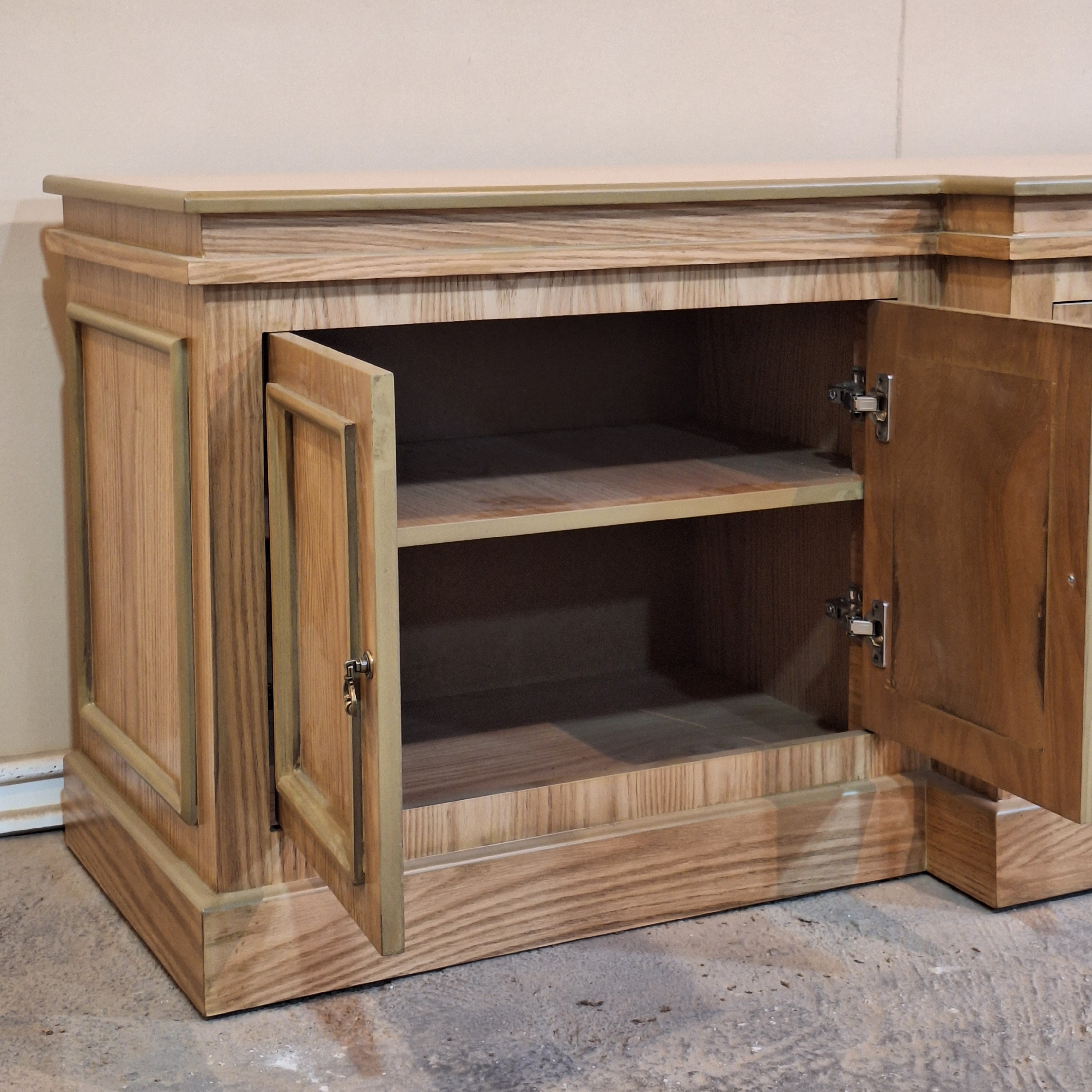 میزتلویزیون کلاسیک جدید جادار سایز 210 📺 جدیدترین میزتلویزیون حال حاضر ایران که به اندازه یه کابینت بزرگ برای ظرف و ظروف جاداره😍 طرح میزتلویزیون به صورت پله ای هست😉 یعنی قسمت وسط جلوتر از بغل ها ابعاد میزتلویزیون : 210/65/55 با رنگ خودرنگ البته هر رنگی که بخواید میزنیم براتون 🌈 متریال 🪵 پایه ها چوب روس ، بدنه ام دی اف روکش چوب طبیعی بلوط با لولای آرام بند برای درب ها تحویل 25 روزه ارسال به سراسر کشور داریم 🚛 هزینه ارسال به عهده مشتری و به صورت میباشد.