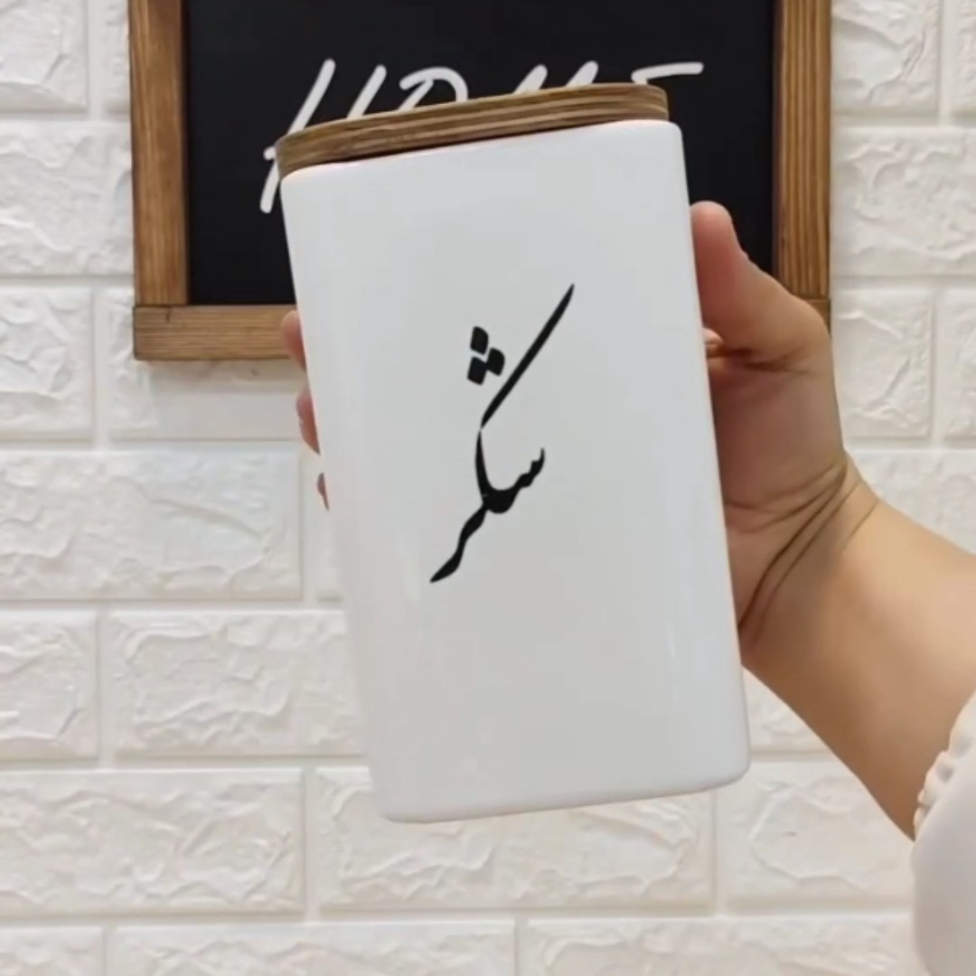 بانکه سرامیکی درب چوبی مربع، جاادویه سرامیکی مربع مبلمونسرا مدل 278310