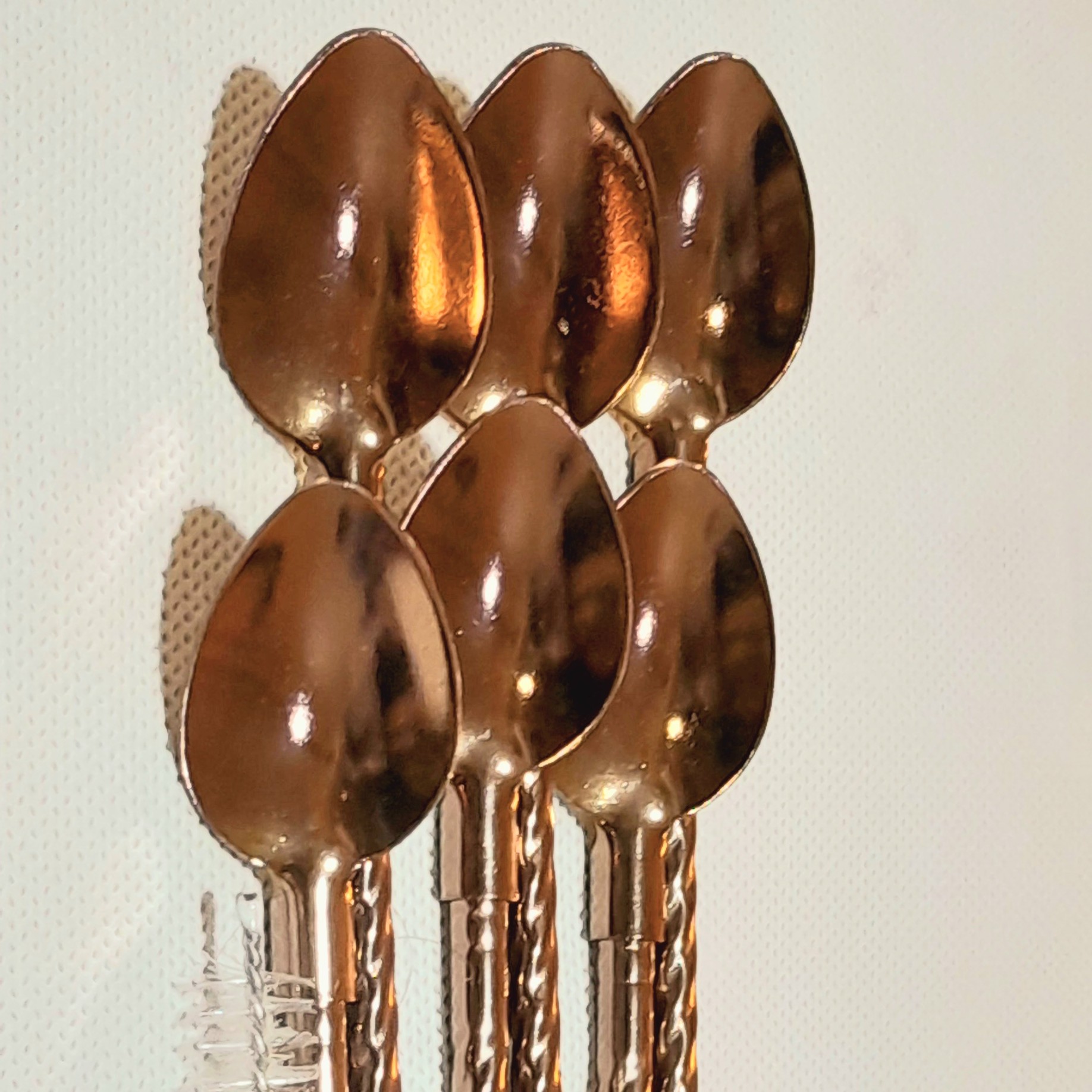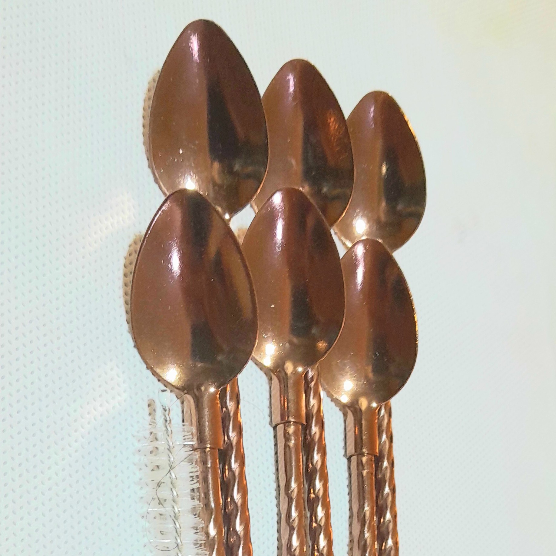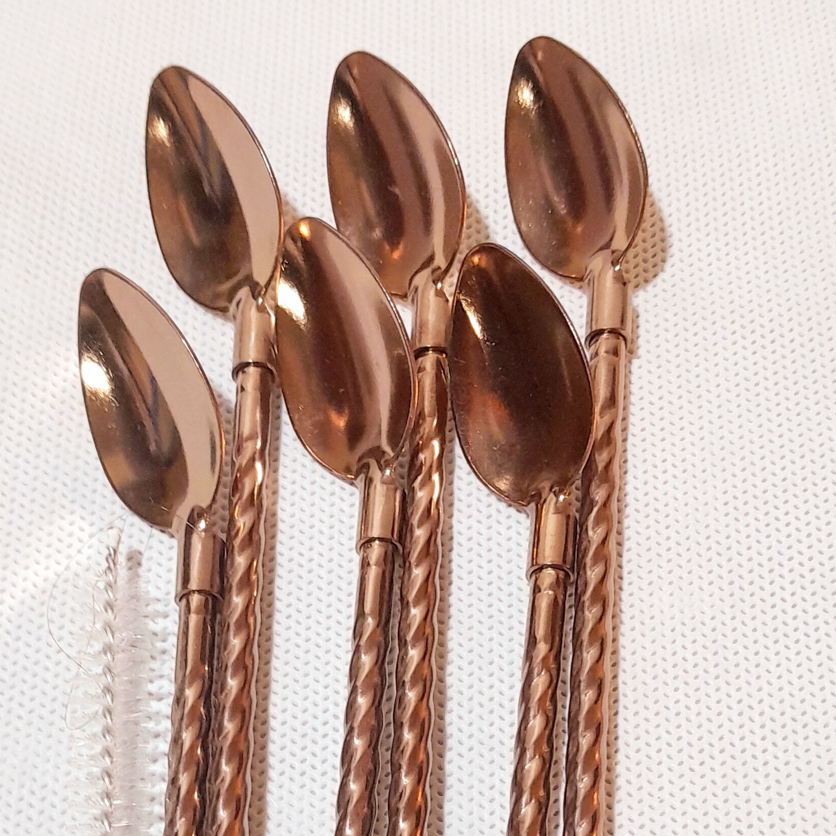 این محصول با دارا بودن فرچه شستشو واز فلز رنگی مسی در هر بسته 6 عددی میباشد ودر طرح ساده قاشق