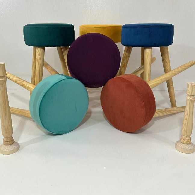 پاف جزیره 🍃🍃🍃 ارتفاع 55 س قطر نشیمن 30 س کف اسفنج سی کیلو درجه یک پایه ها چوب روسی درجه یک با پوشش پلی استر در 25 رنگ پارچه مخمل دیاموند ایاز