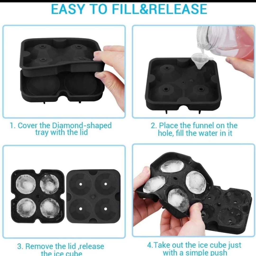قالب یخ مدل الماسی 4خانه جنس سیلیکونی نرم و قابل انعطاف برای خارج شدن راحت تر یخ و ژله و ...