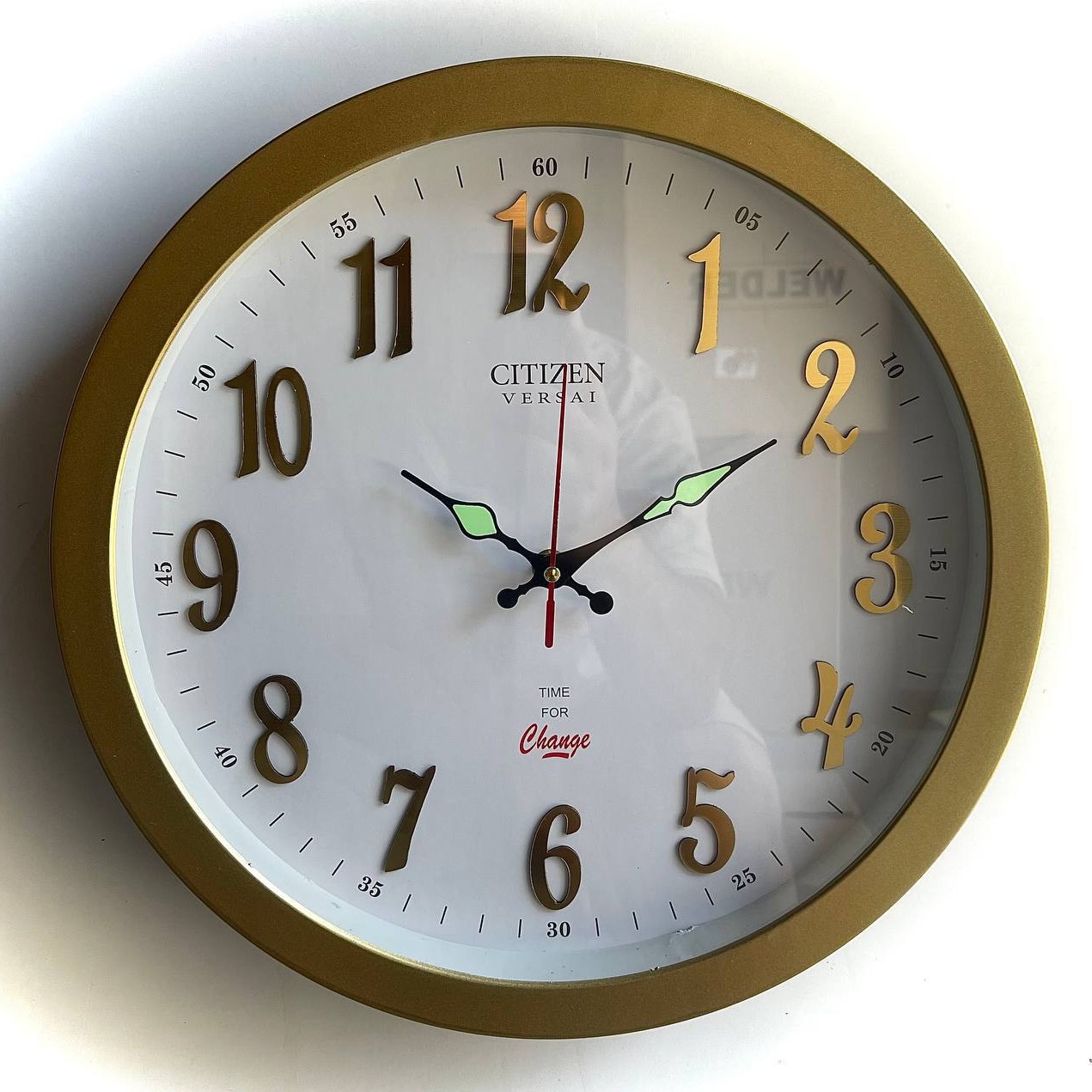 ساعت دیواری سیتیزن ورسای 220 مولتی شبنما اعداد طلایی عقربه شبنما آرامگرد بیصدا در رنگهای مختلف در عکس موجود