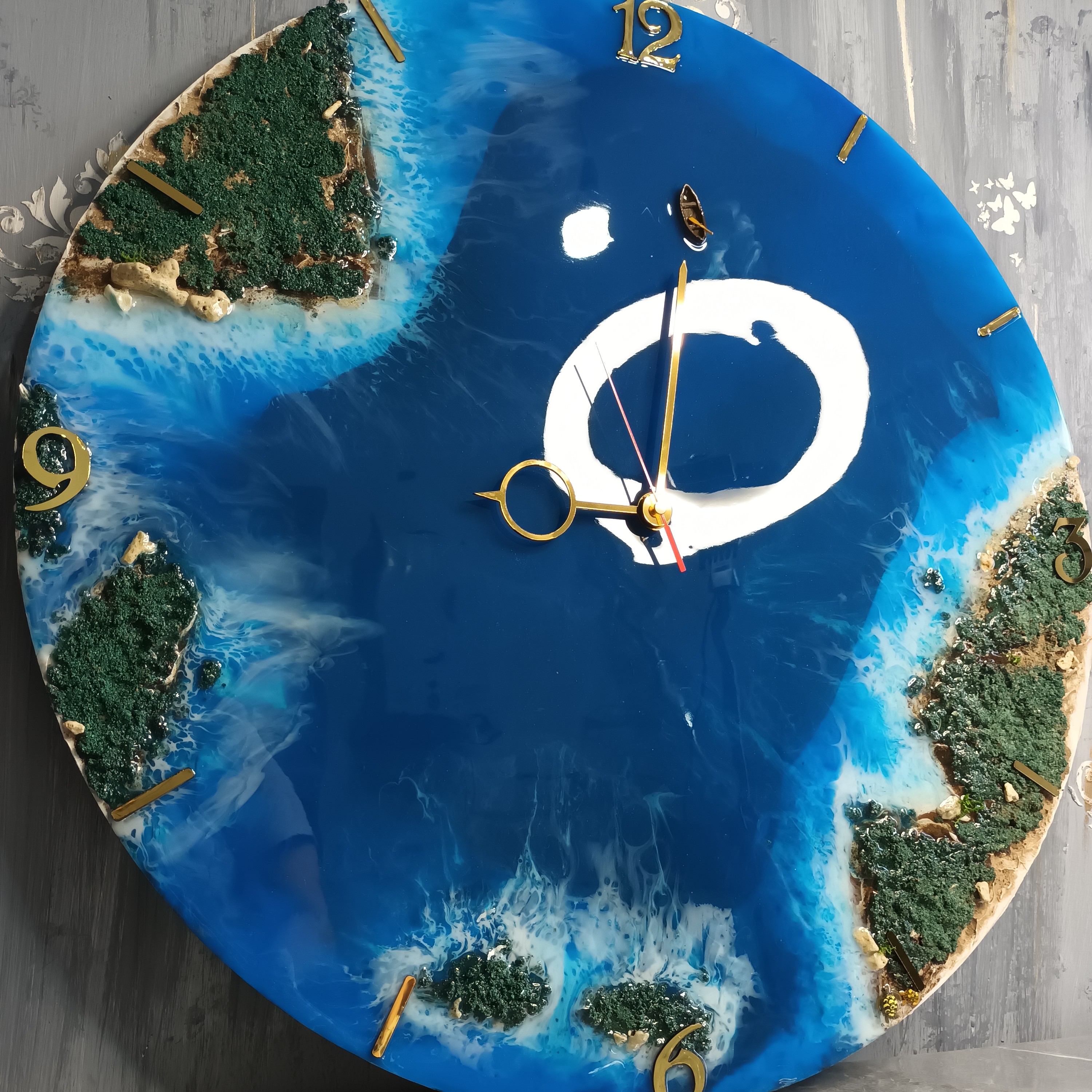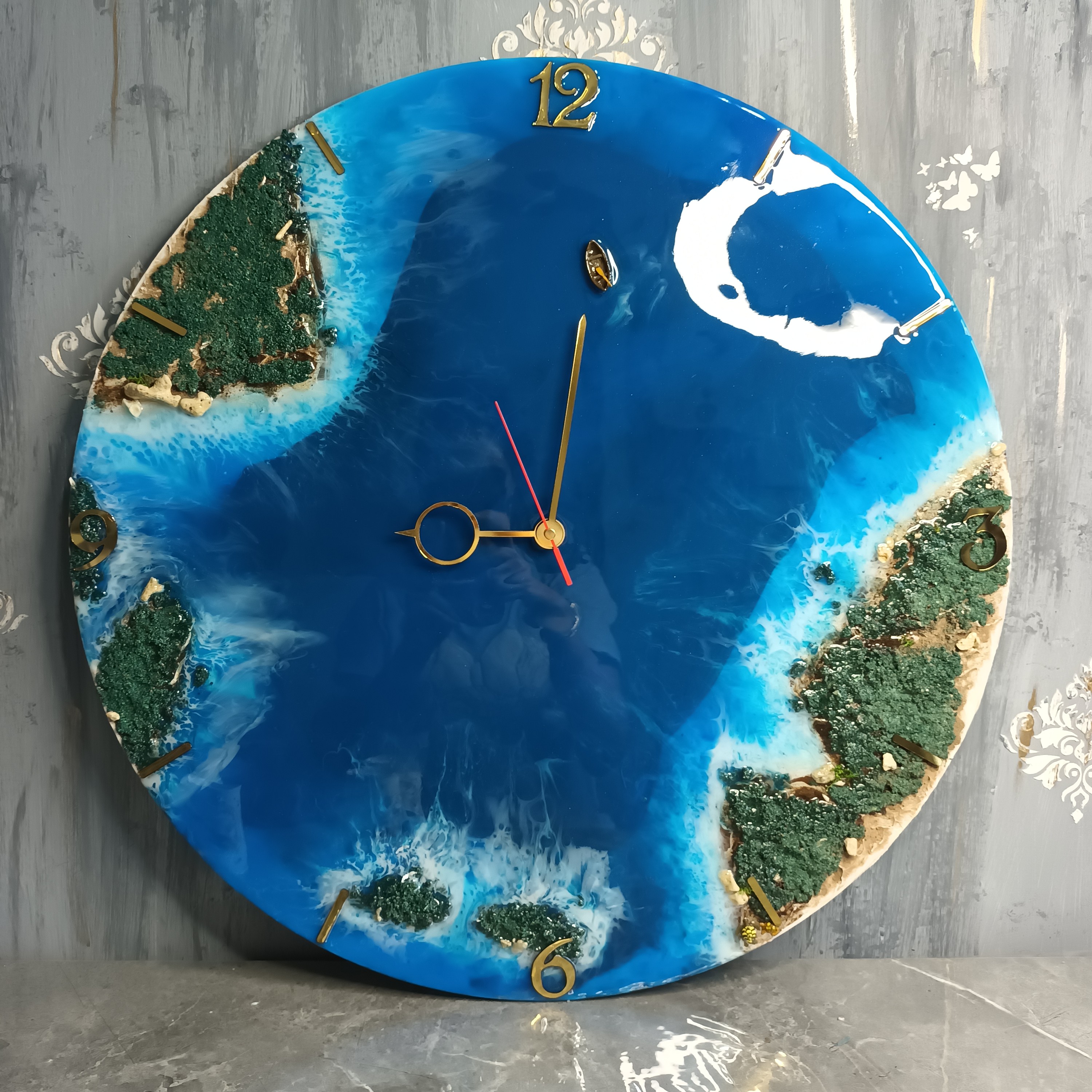 ساعت دیواری رزینی بدنه ام دی اف و سطح کار رزینی بسیار پر از جزئیات موتور تایوان آرامگرد و یکسال ضمانت