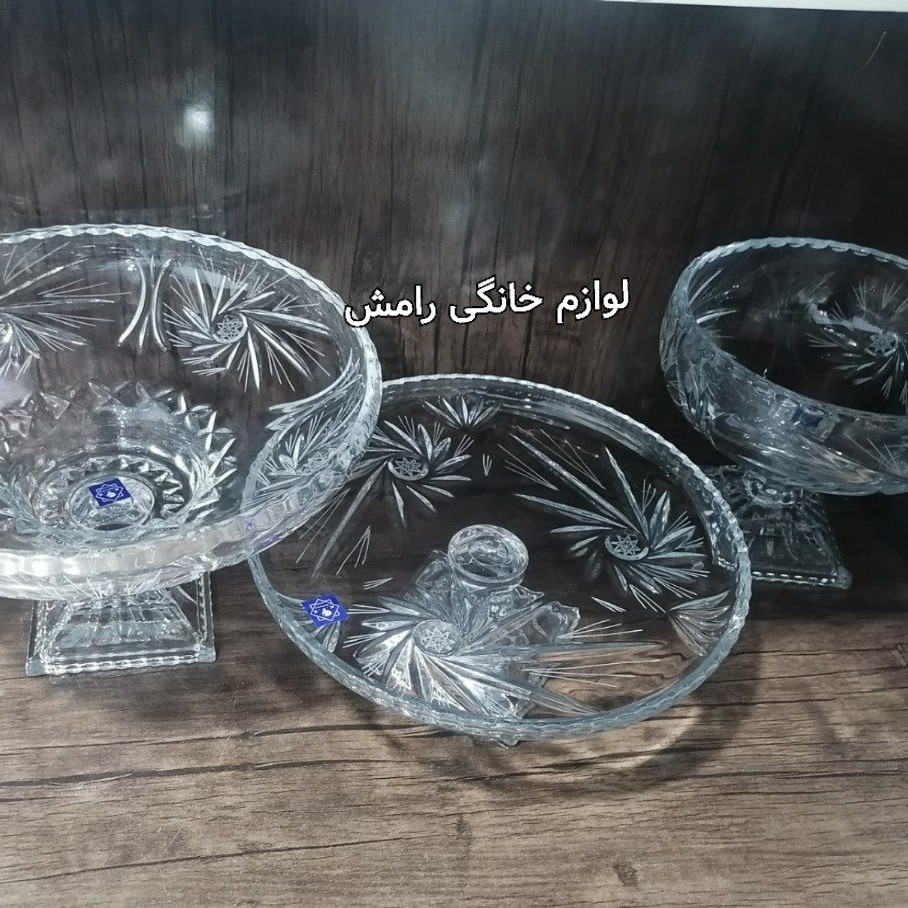 سری 3 عددی میوه دان قدح بزرگ خورشیدی و کاسه میوه دارن متوسط خورشیدی و دیس تخت پایه دار شیرینی خورشیدی پریما خارجی ارسال رایگان کیفیت عالی و زیبا و شفاف