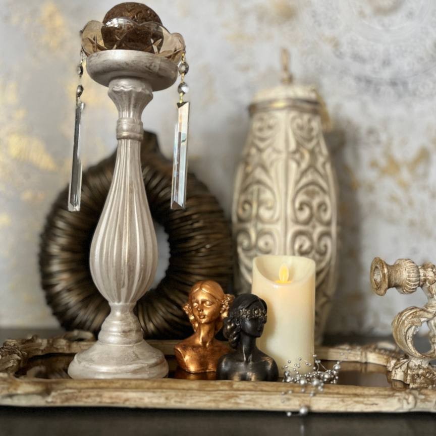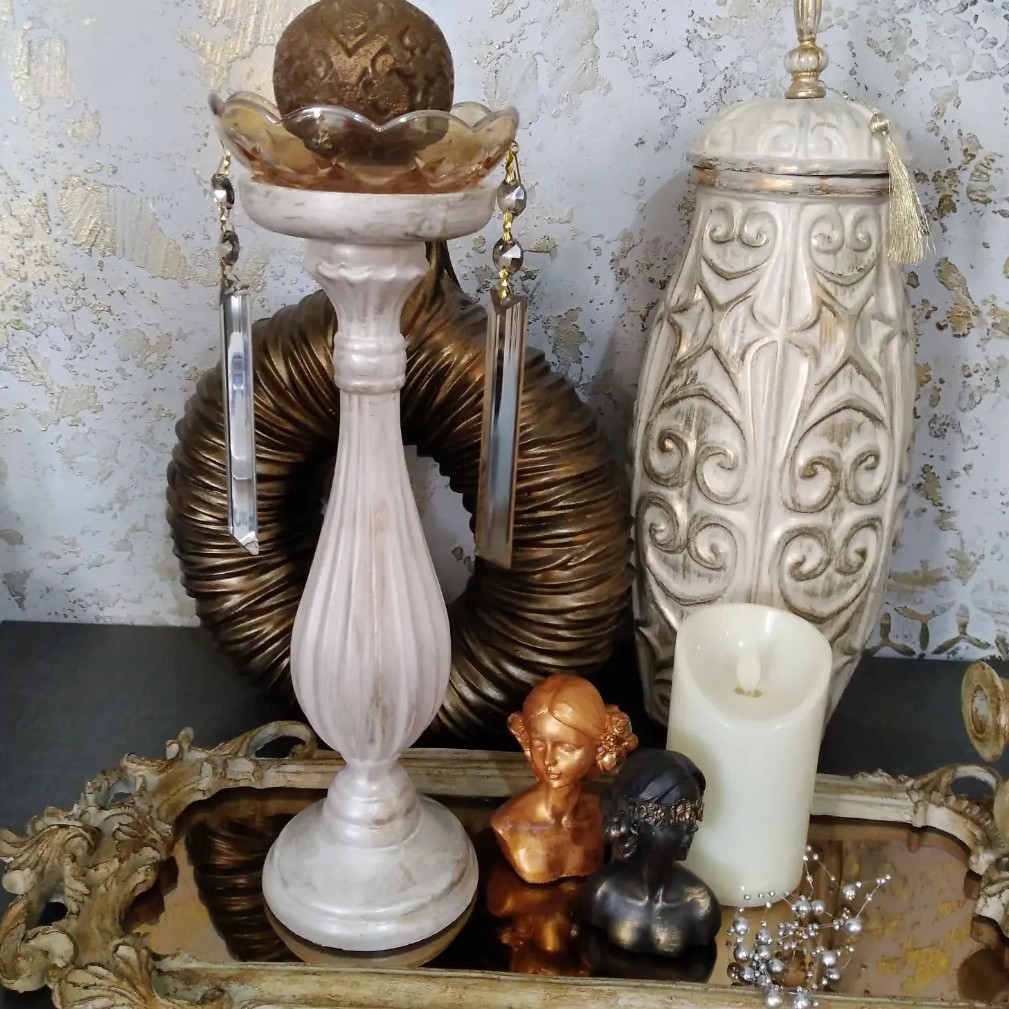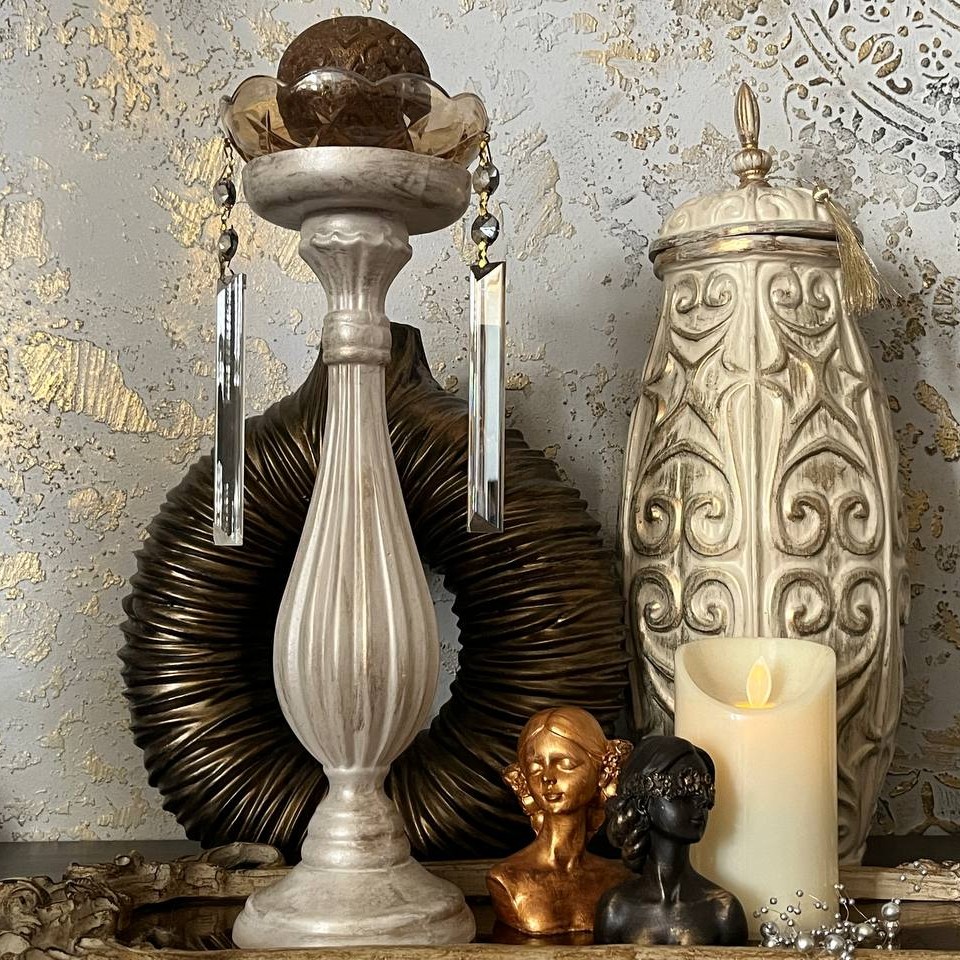 شمعدان پلی استر پتینه شده تک ارتفاع سی و سه سانت قابل اجرا در رنگ و پتینه و تعداد دلخواه
