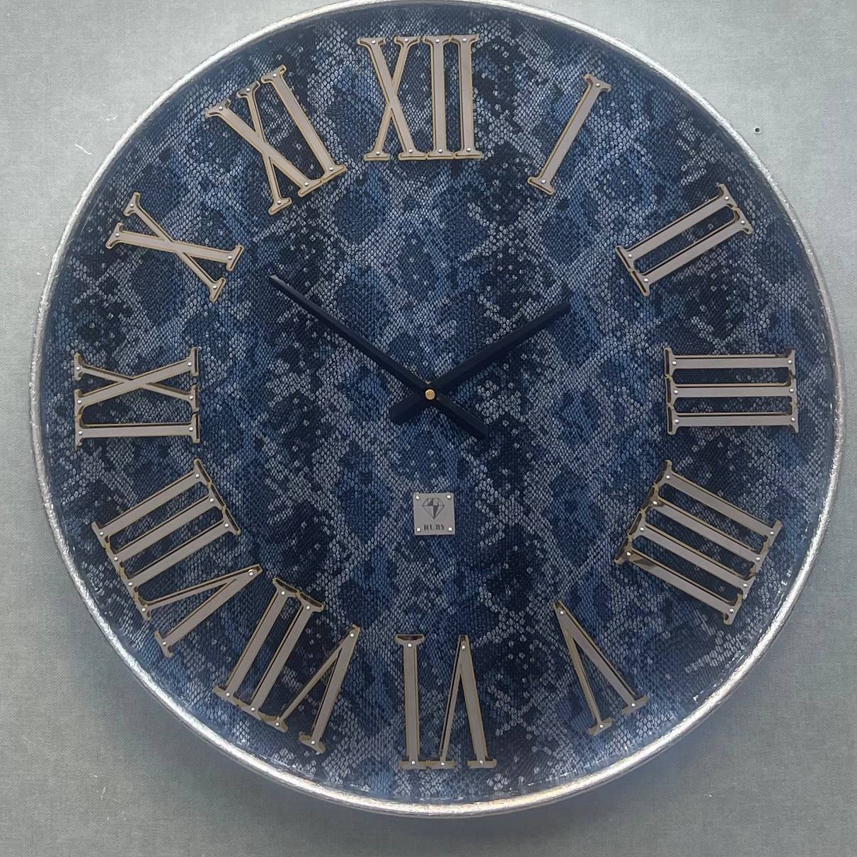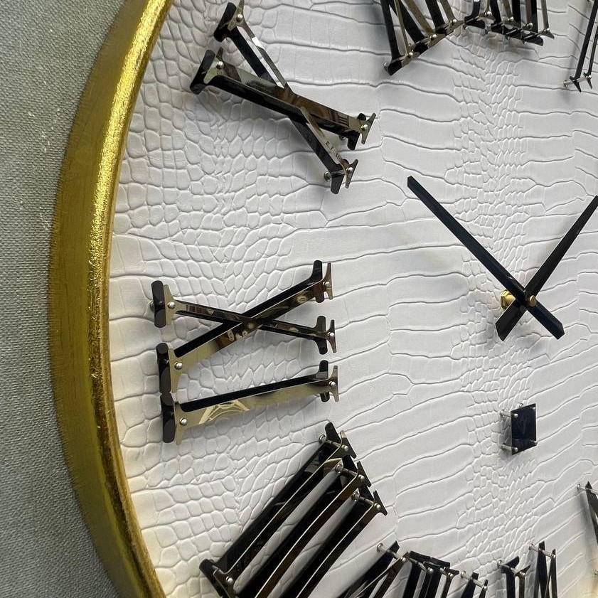 ساعت روبی دورچوب عدد استیل صفحه چرم سایی 60 سانت آرامگرد شیک کد 106 سفید. پوست مار. نقشه