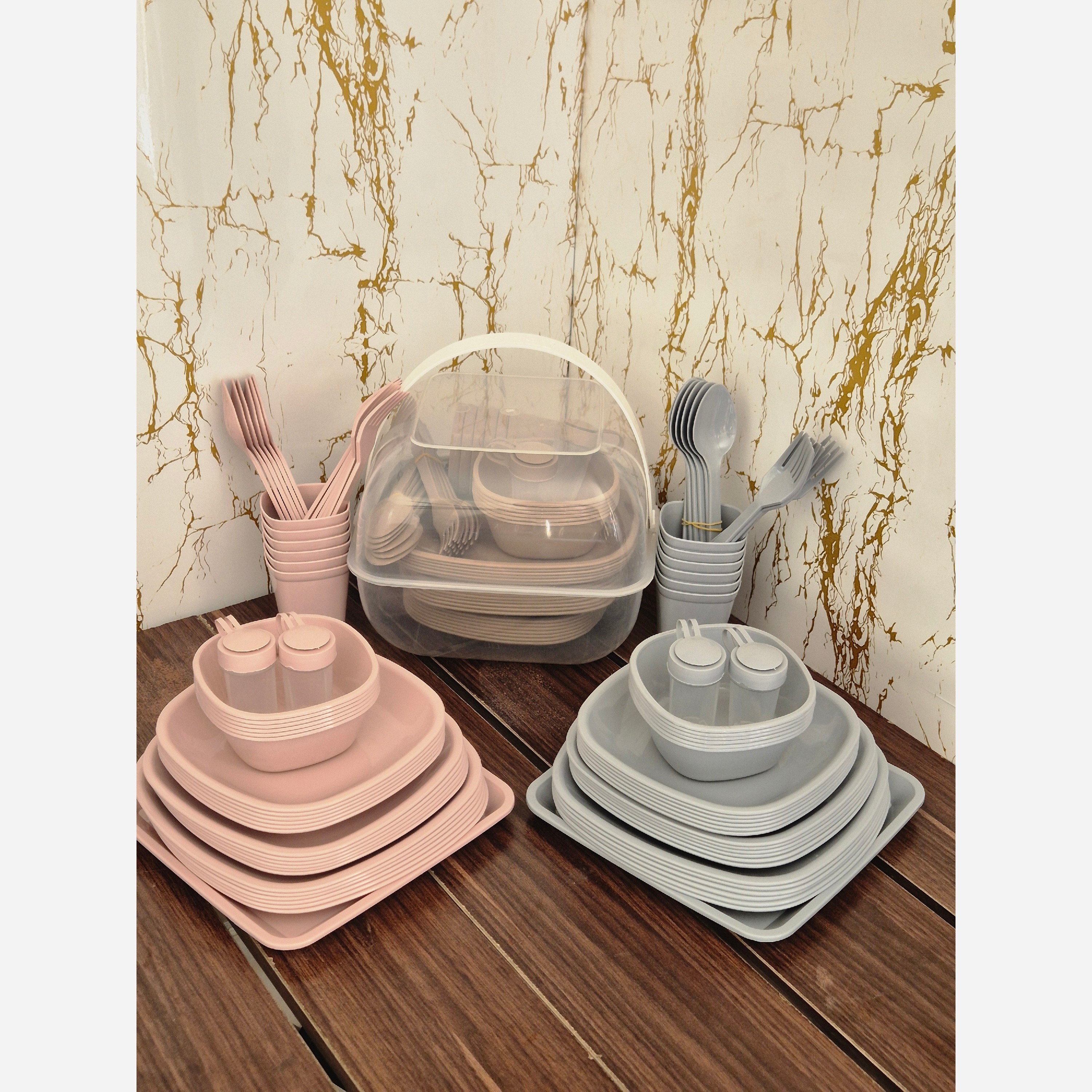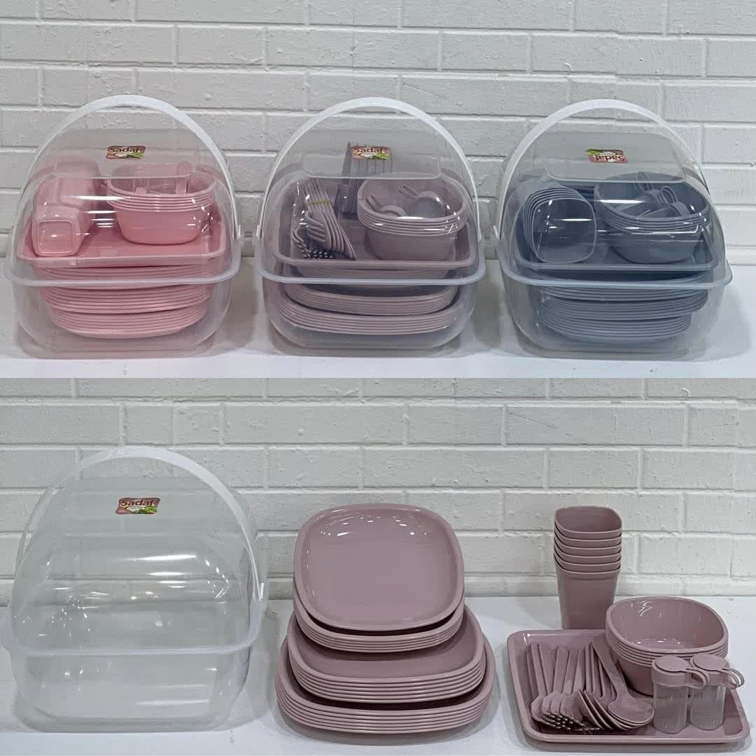 سرویس مسافرتی 48 پارچه شامل: 6 عدد کاسه 6 عدد لیوان 6 عدد بشقاب کوچک 6 عدد بشقاب متوسط 6 عدد بشقاب بزرگ 6عدد قاشق 6عدد چنگال 2 عدد نمک پاش 1عدد سینی 1 عدد باکس خالی درب دار