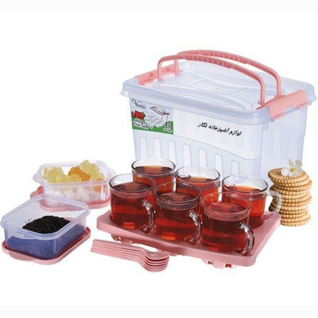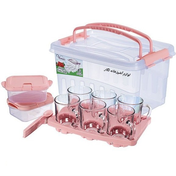 سرویس چای خوری شامل 6لیوان شیشه ای باکیفیت✅️ سینی ظرف نگهدارنده لیوان✅️ 6 قاشق چای خوری✅️ 2ظرف نگهدارنده ✅️ و یک باکس نگهدارنده قفلدار خوب که وسایلتون داخلشه😊