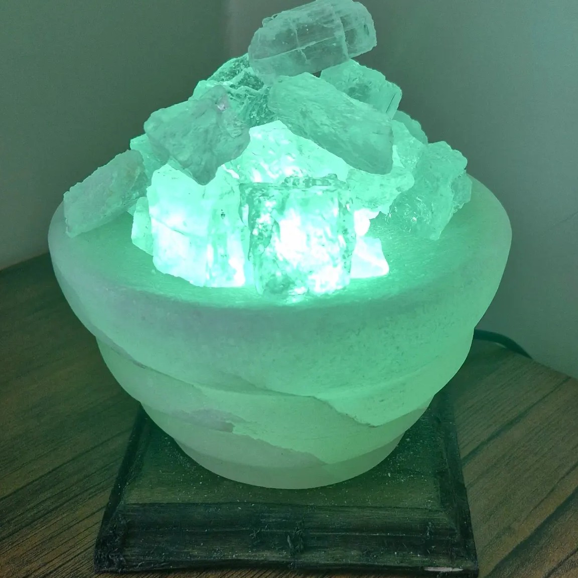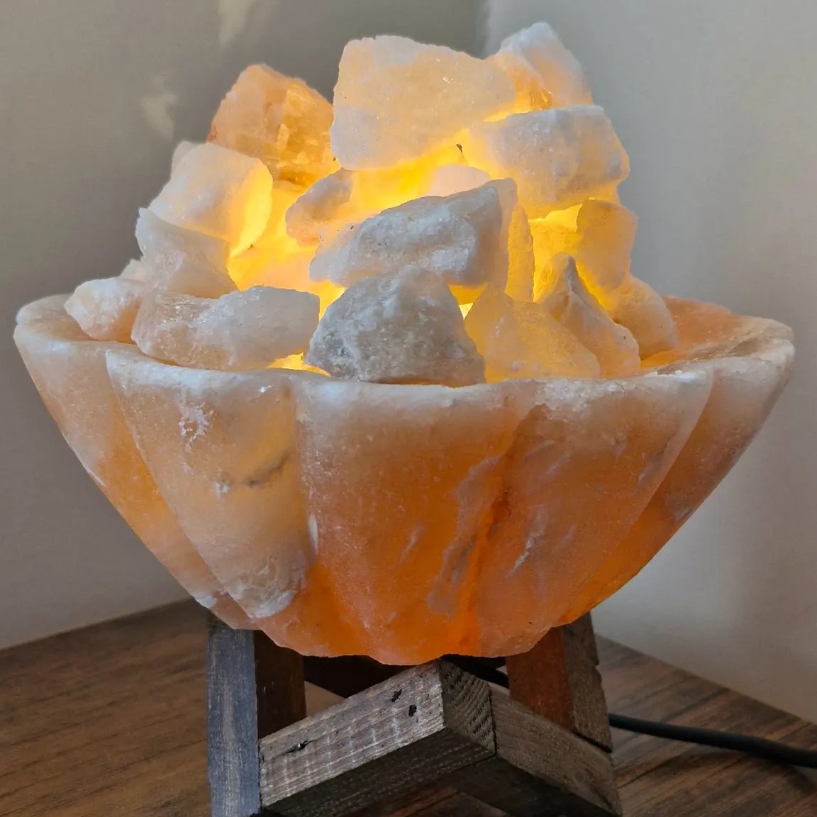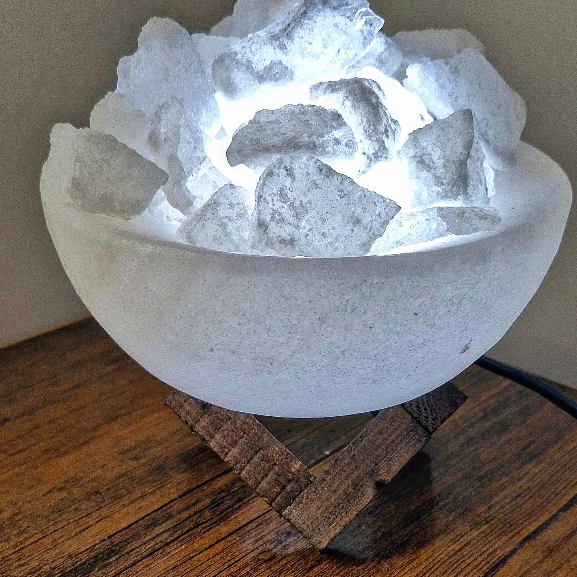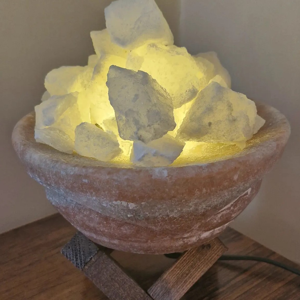 آباژور کاسه دلنمک در رنگ های زیبا لامپ آباژور قابل سفارش در رنگ دلخواه شما از سنگ نمک سفید_نباتی_نارنجی_صورتی تولید شده