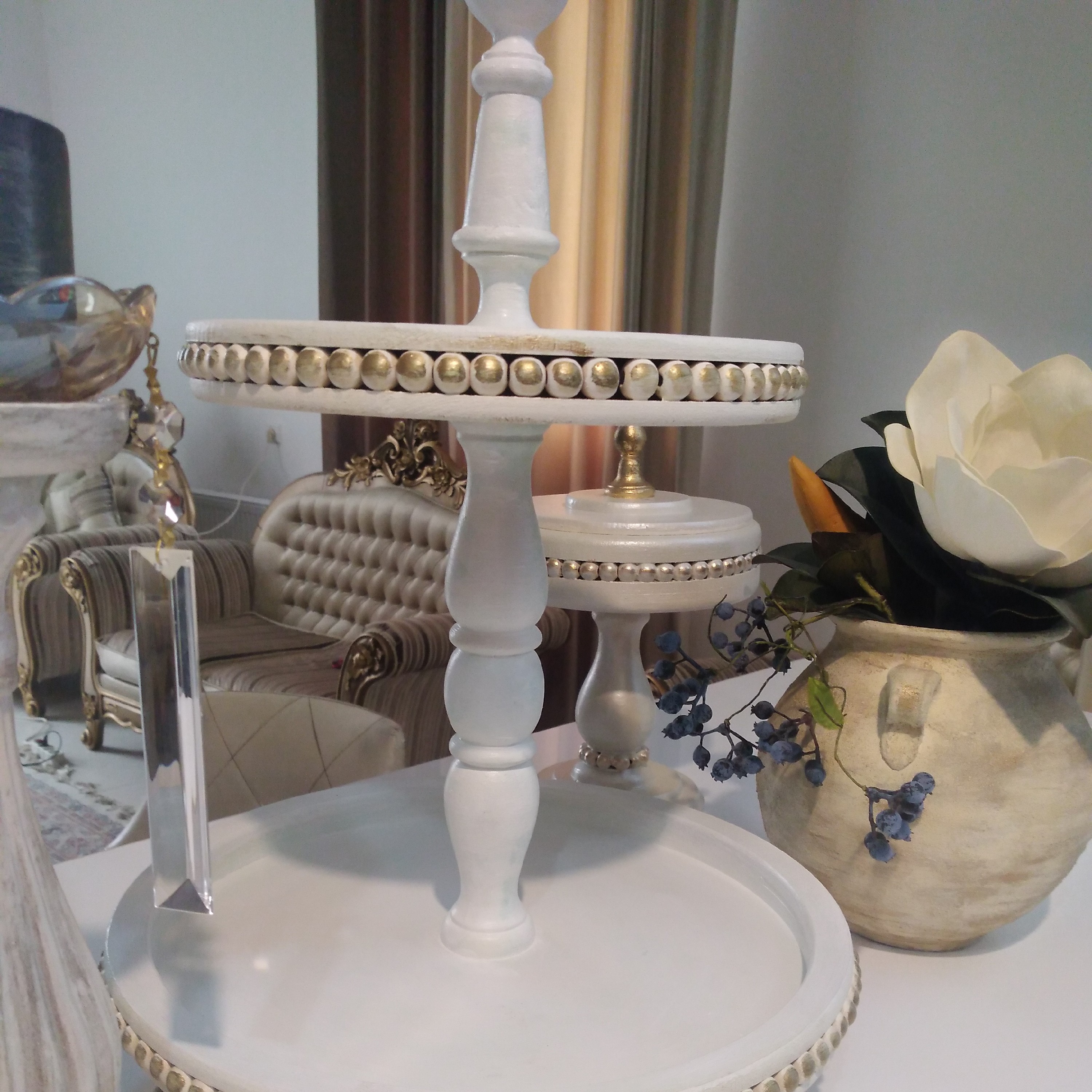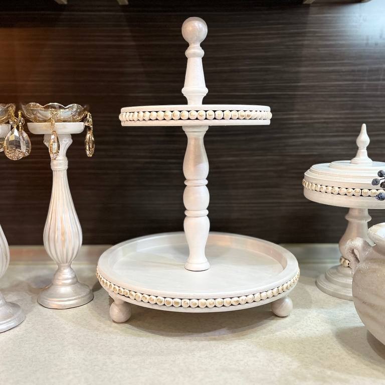 رایزر دو طبقه چوبی قطر صفحه پایین بیست و شش وقطر صفحه بالا بیست ارتفاع کل پنجاه و چهار سانت