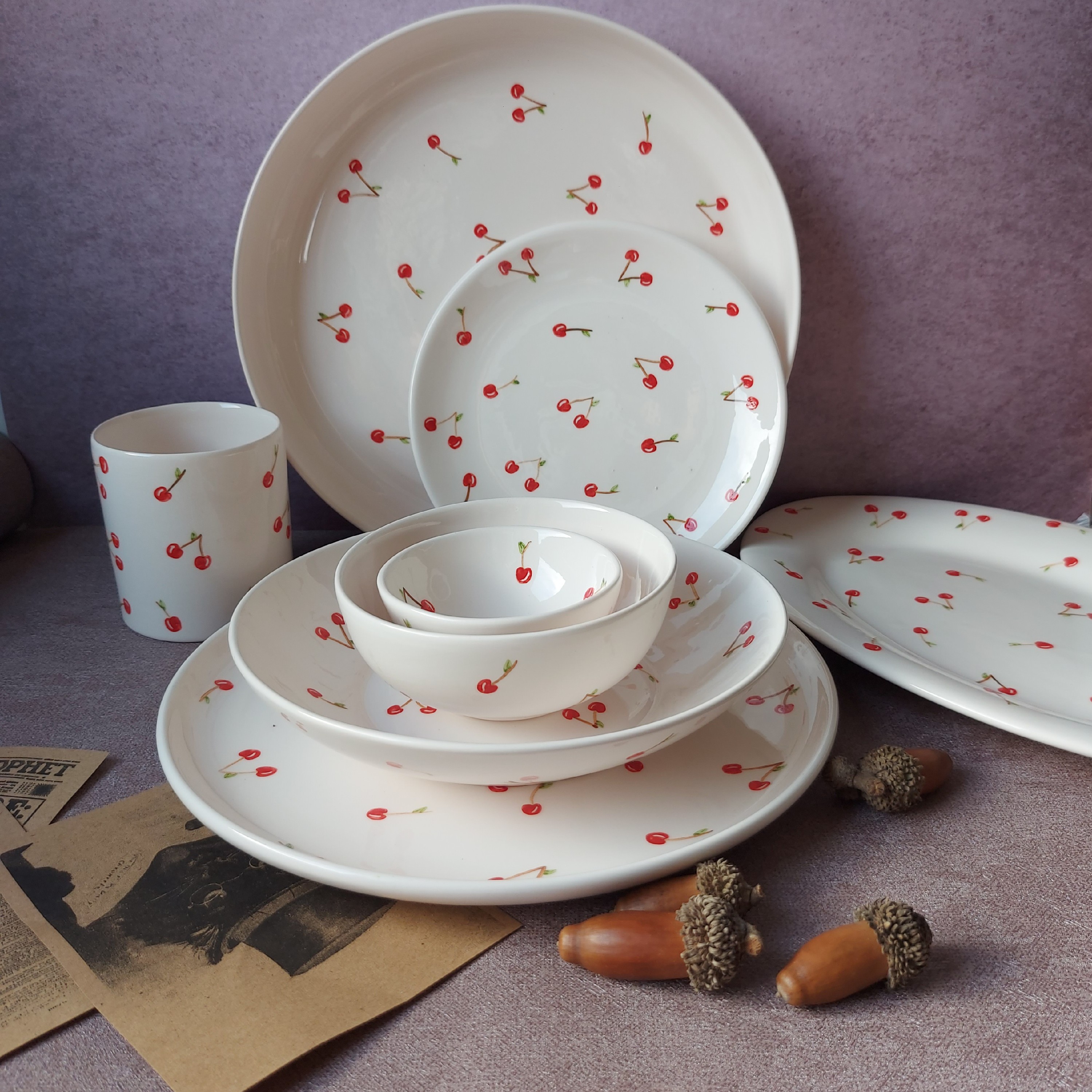 8 عدد بشقاب غذا خوری 8 عدد خورشت خوری 8 عدد فنجان چای و نعلبکی دوعدد دیس بیضی 8عدد کاسه 13 سانت 8عدد کاسه 8 سانت سرویس سرامیکی طرح آلبالو به درخواست مشتری چیدمان شده در صورت نیاز شما اقلام سرویس قابل تغییر میباشد