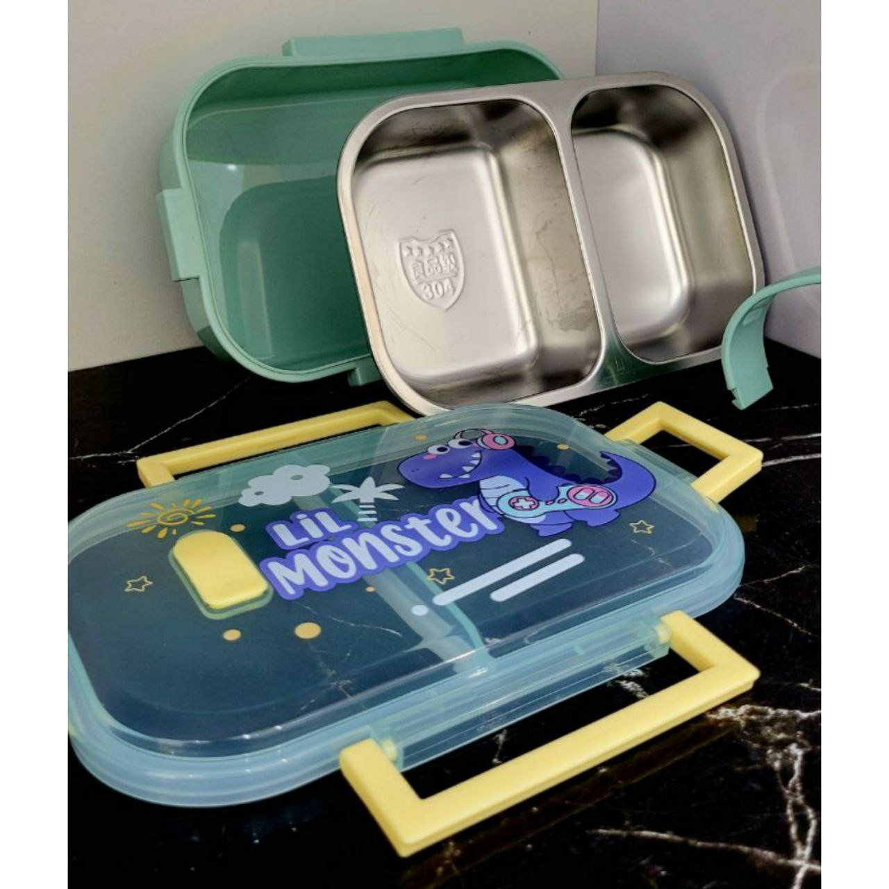 ظرف غذا یا لانچ باکس داخل استیل 304 دسته دار محتویات قاطی نمیشود مبلمونسرا مدل 294525