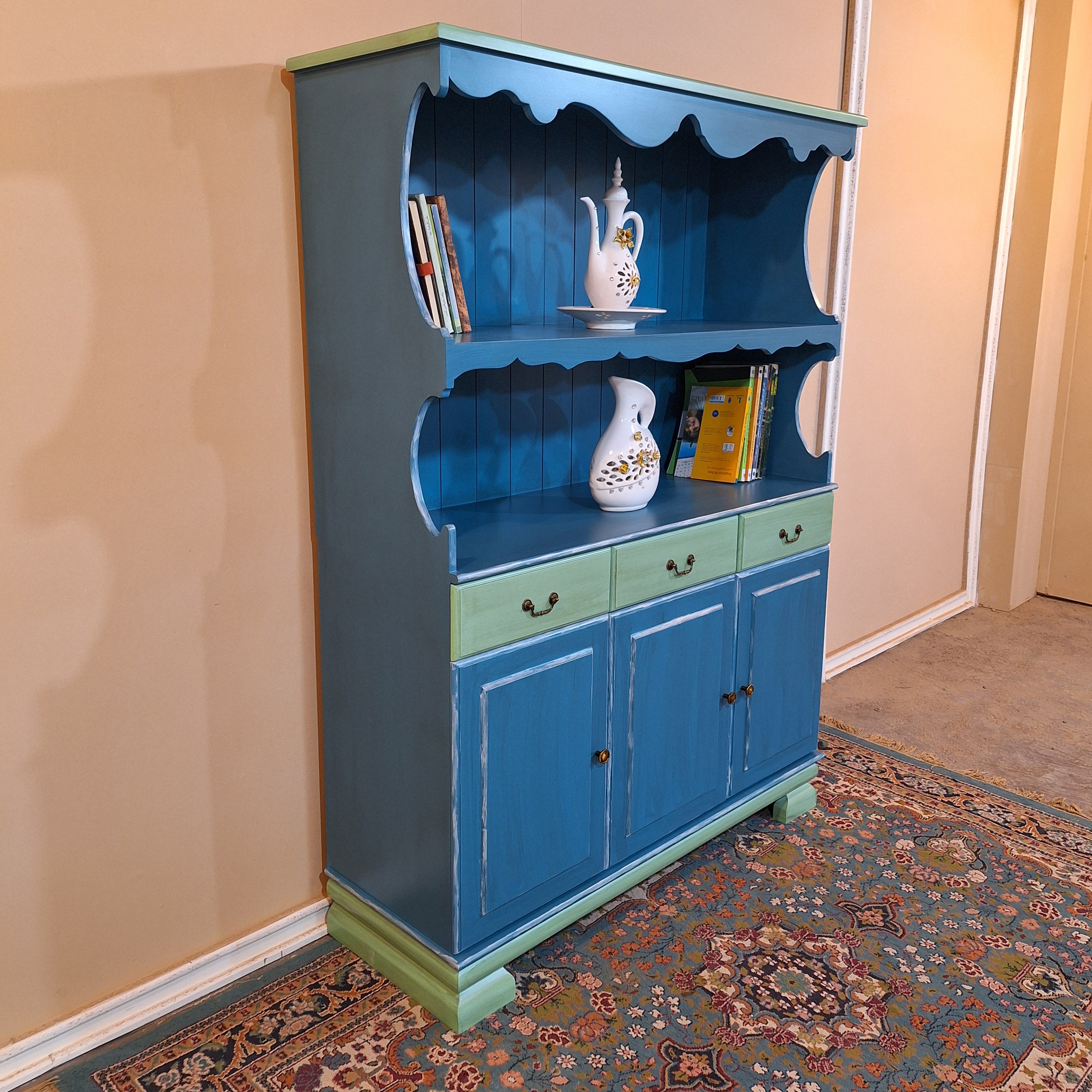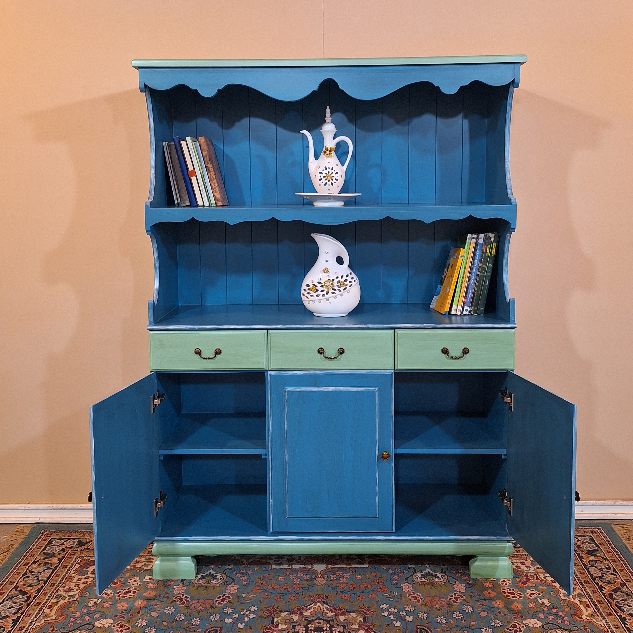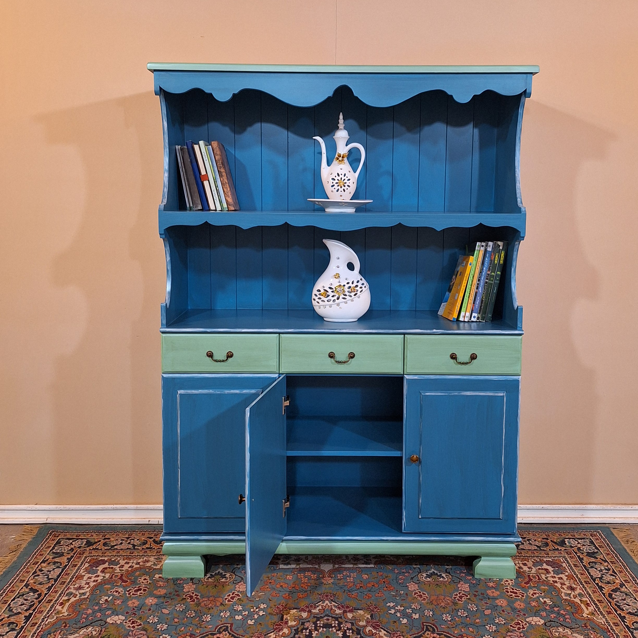 کافی بار خانگی چوبی کلاسیک رنگ آبی سبز😍 یکی از جادارترین کافی بار های خانگی که دیگه از کنسول بی نیاز میشی😉 قسمت پایین یه کنسول سه درب که دوطبقه هست و بسیار جادار برای چیدمان ظرف و ظروف👌🏼 سه کشو کاربردی و همچنین ویترین بالای کافی بار برای دستگاه های قهوه ساز و فنجان و ...🥰 رنگ بدنه آبی با پتینه مشکی و نر های کار پتینه سفید رنگ کشو ها سبز پتینه قهوهای که البته رنگبندی کاملا دلخواه شماست 🌈 ابعاد: 120/40/170 متریال 🪵 پایه ها چوب روس ، بدنه ام دی اف خام ، رنگ پوششی و پلی استر ریل کشو ها ساچمه ای سه زمانه پهن ، لولای درب ها آرام بند ارسال به سراسر کشور داریم 🚛 هزینه ارسال به عهده مشتری و به صورت میباشد .