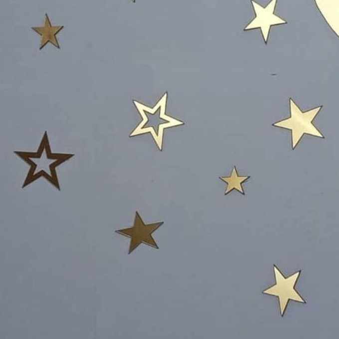 طرح ستاره مناسب اتاق خواب ،اتاق کودک پذیرایی، آشپزخانه ،خانه بازی وفروشگاه های مرتبط با کودکان نصب راحت و سریع ،پشت محصول تمامأ چسب داره ضد آب دو رنگ طلایی و نقره ای وترکیب طلایی و نقره ای دیگه چی بهتر از این.....